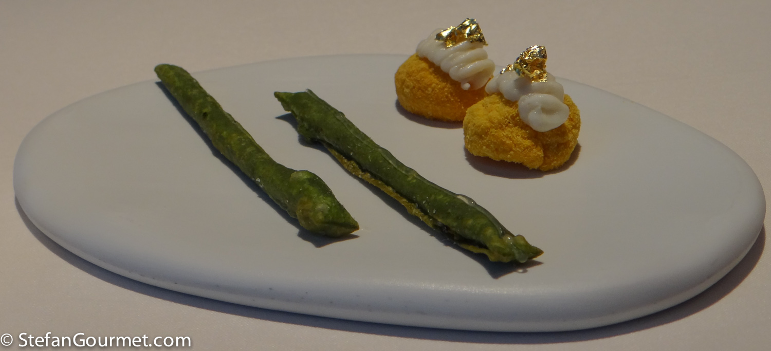 Inside the hotel and the restaurant you do not notice at all that the location of the hotel and restaurant by the freeway is not scenic at all. The restaurant looks very nice in fact, modern without being cold. We ordered the “Be Contemporary” 8-course degustation menu for 150 euros, plus 90 euros for matching wines. This may seem steep for the wines, but given the wines that were served you are getting your money’s worth. There is also a 4-course degustation of “classics” for 75 euros or 130 including matching wines.