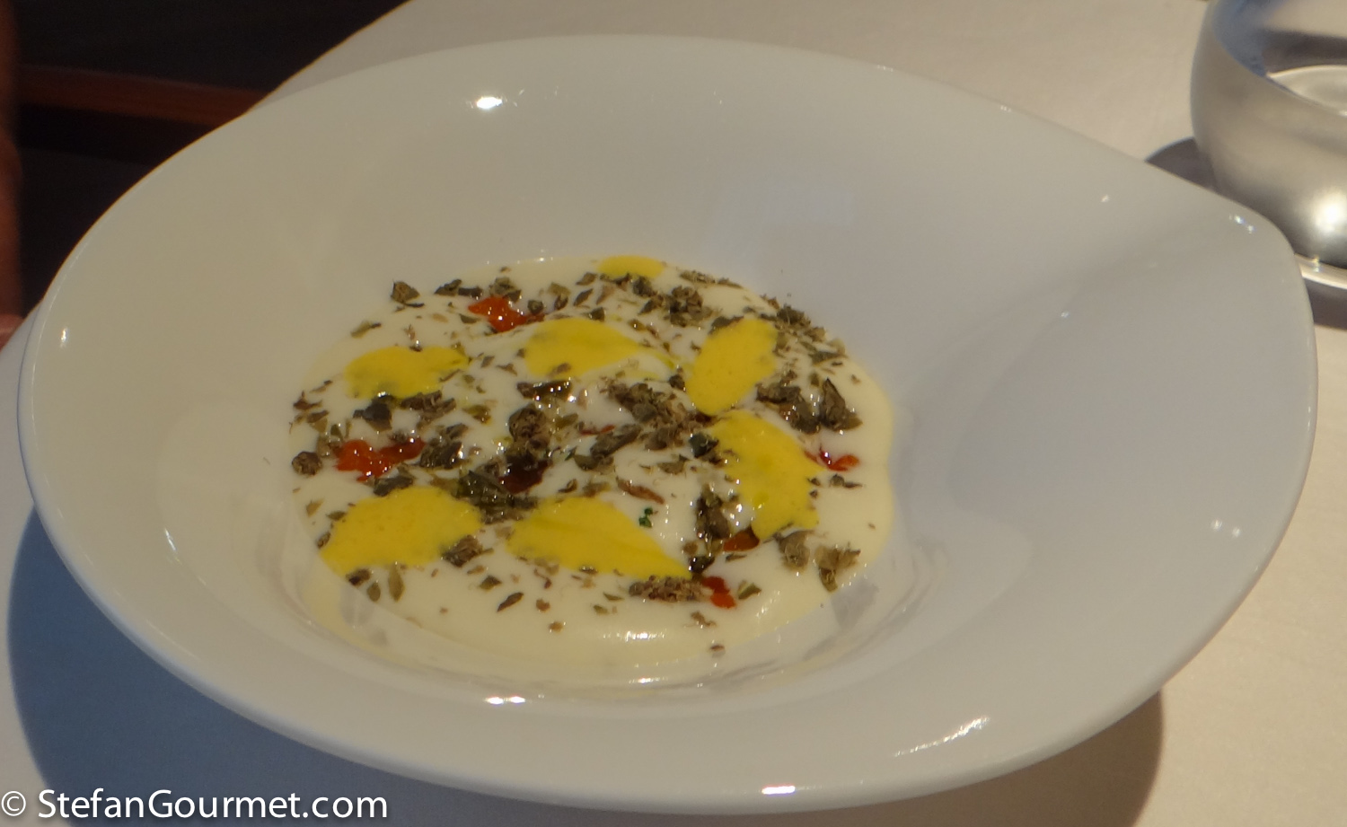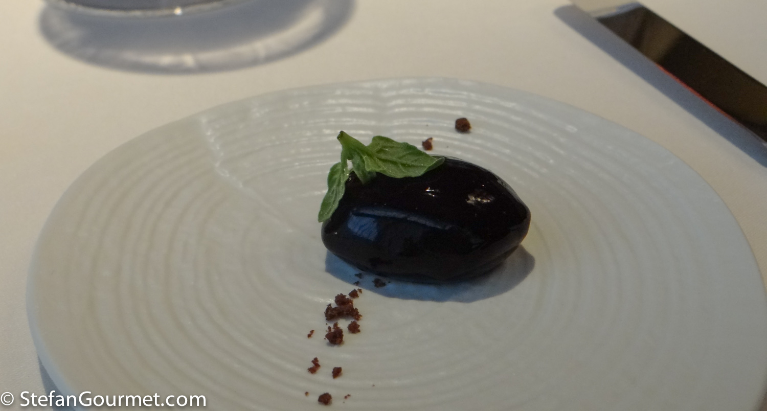 It is clear from the start that chef Bartolini is aiming even higher (i.e. for a third star). The amuse bouche are superb. The first one looks like a tiny eggplant and tastes of grilled slightly charred eggplant with great depth of flavor.
