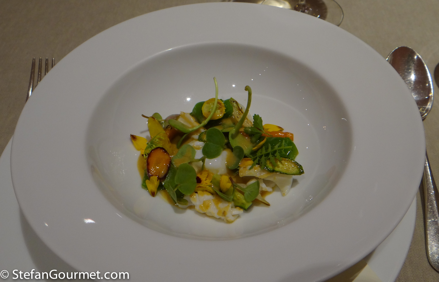 The ‘cannellone’ was not actually made from pasta dough, but from tomato. It had great depth of tomato flavors, 10/10. Unfortunately the Pommard was too young and did not have the right acidity, and clashed with the dish.
