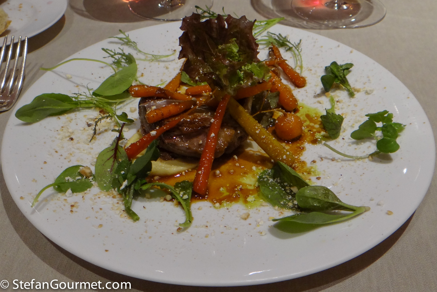 The pigeon with mustard, corn, and carrots was very nice. Also in this case it was important to taste everything together: together with the crispy corn and the sauce the pigeon was delicious. 9/10 The Barolo from 2007 was unfortunately too young and didn’t work very well with the pigeon. With an aged Barolo this dish would have been awesome.