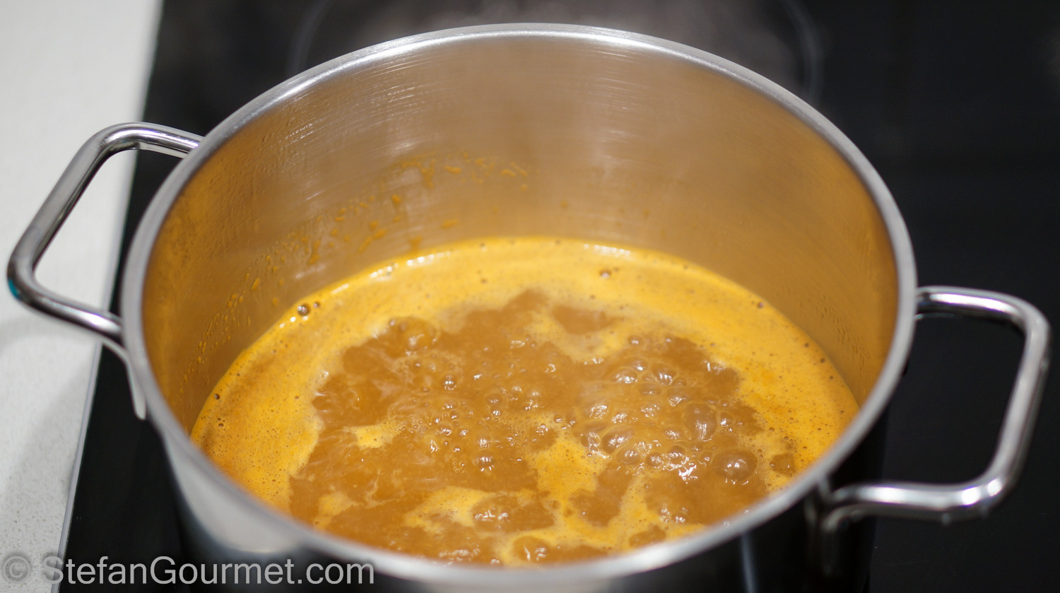 Put the shrimp stock in a saucepan and bring to a boil, then turn off the heat.