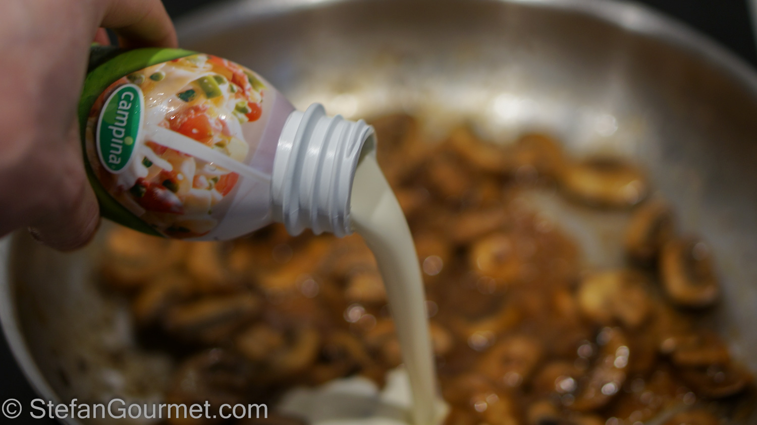 I found similar recipes on Mexican websites that included chicken stock cubes as well and use canned mushrooms. I decided to leave out the mayo and include concentrated homemade chicken stock to boost the chicken flavor. It goes without saying I used fresh mushrooms. I also prepared some homemade corn tortillas to serve this with (flour tortillas are not Mexican and corn tortillas are easier to make). I was very happy with the result and thought it was creamy enough without the mayo. The chicken stock did really boost the chicken flavor. The combination of chicken with mushrooms, cream, and the spiciness of the chipotle in adobo is delicious and has many layers of flavor. You can make it as spicy or as mild as you like by changing the amount of chipotle. This is a very easy dish that is absolutely wonderful and that I will definitely make again. Here’s what I did…