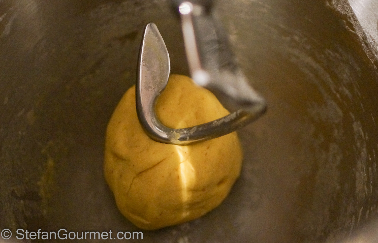 I tried kneading the dough with the dough hook in the stand mixer, but this did little to improve the texture of the dough.
