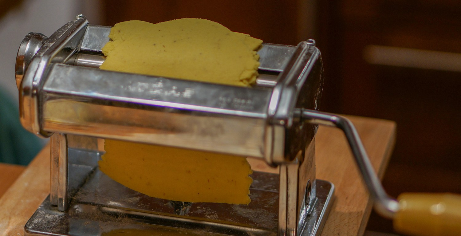 When rolling out the dough, you will notice that it won’t stretch as easily as dough with gluten. Use the widest setting to start with as usual, but shape the dough into a wider shape than usual before you start using the thinner settings.