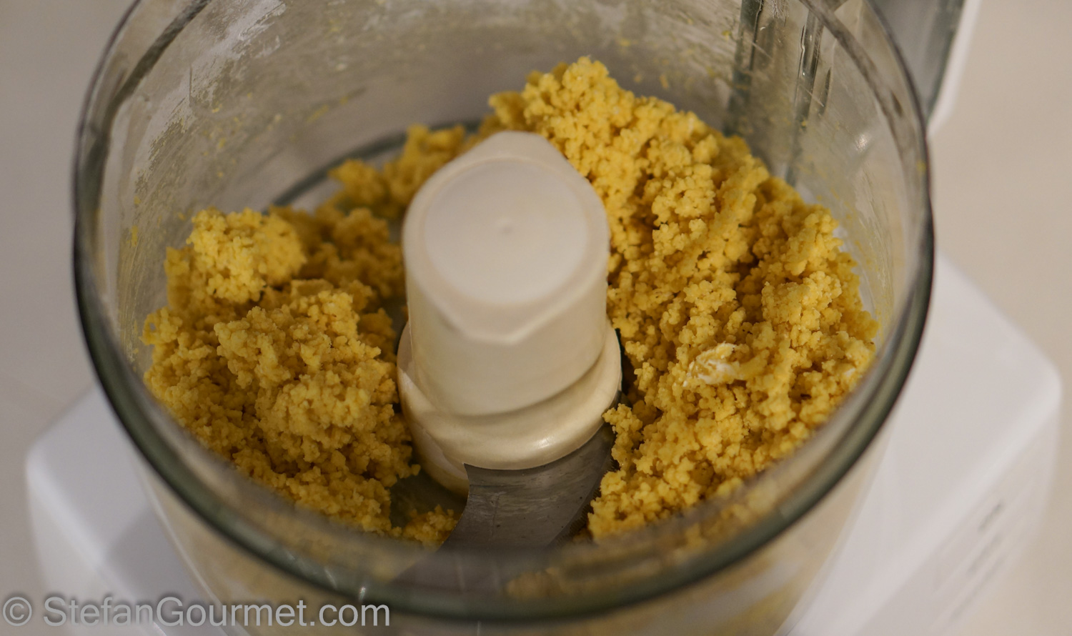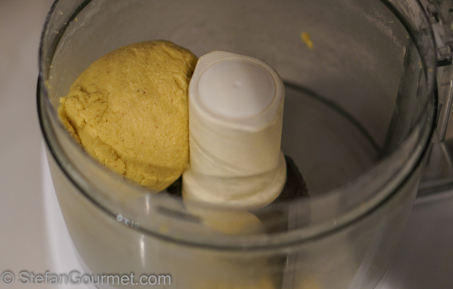 If needed, add water until the dough comes together. Only add water by a teaspoon at the time, and process until it has been fully incorporated before adding another teaspoon.