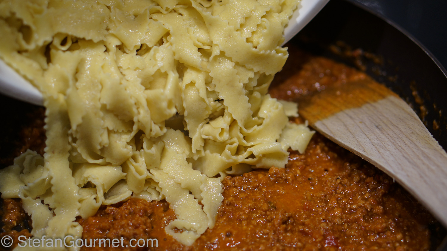 This looks like a perfectly normal plate of Tagliatelle alla Bolognese. But in fact it is not, because these homemade tagliatelle have been made without gluten. A friend who suffers from celiac disease was coming over for dinner, and I decided not to take the easy way out (by simply eliminating baked goods and homemade pasta by cooking an Asian dinner for her) but to give her a full Italian dinner like I prepare for all my friends and family. Since I had never experimented with gluten free baking and pasta making before, I wanted to experiment a little beforehand to make sure that I would be able to serve something decent. And so I experimented with gluten free bread and gluten free fresh pasta dough.