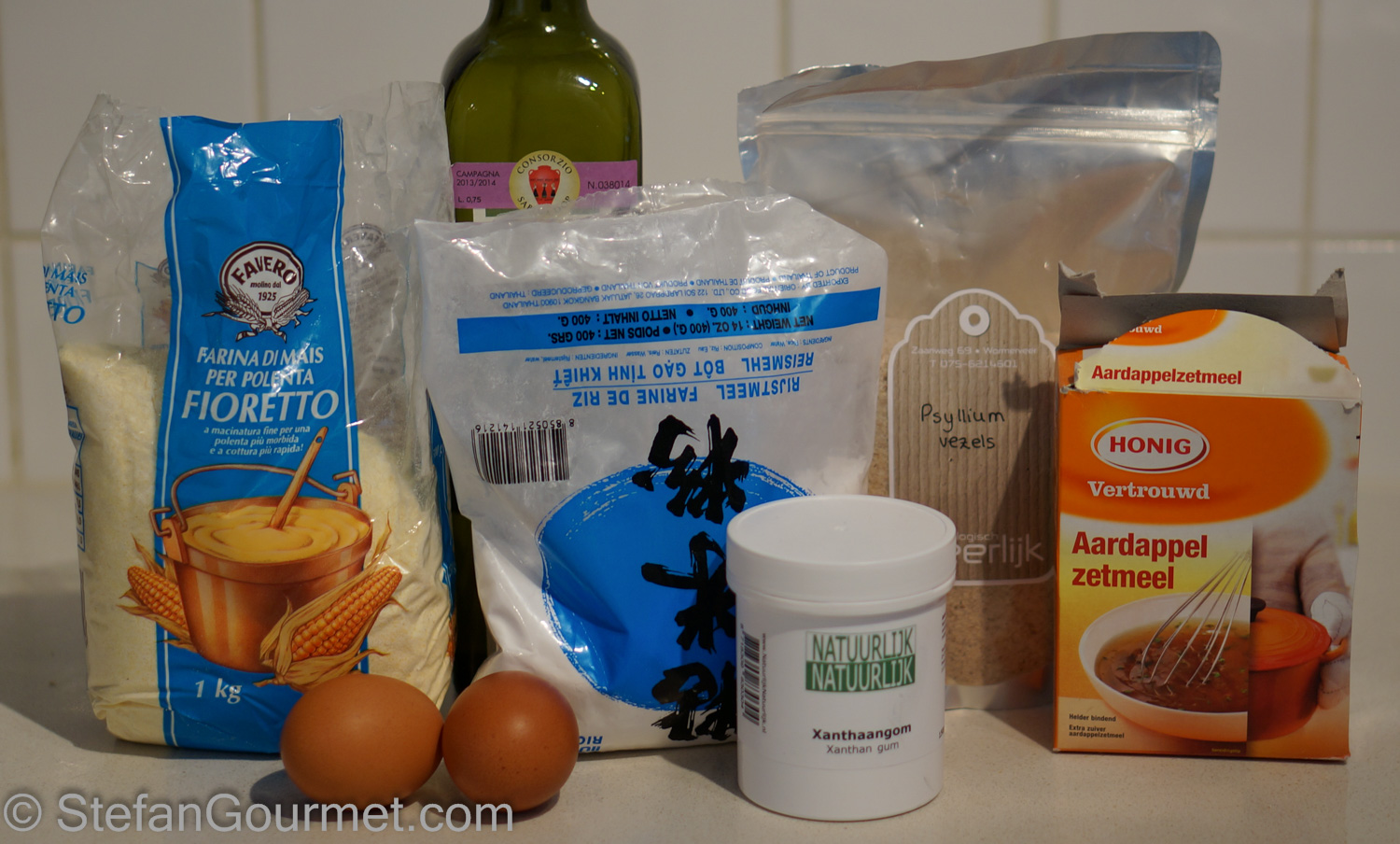 As a nice paradox, in the process I learned a lot about the effect of gluten on dough. Gluten is what gives dough its strength and elasticity. When working with wheat flour with gluten, I am used to choosing low protein flour (i.e. low gluten flour) to make shortcrust dough, which is supposed to be flaky and is not supposed to shrink. When I make pizza, I prefer to use a cold-fermented dough that has not been kneaded, as the gluten that would be developed by kneading make it very difficult to stretch out the pizza dough (it keeps retracting). When I make homemade pasta dough, I knead it until it is elastic. I knew that this was all related to the gluten in the wheat flour, but working with gluten free dough has given me a deeper understanding of this.