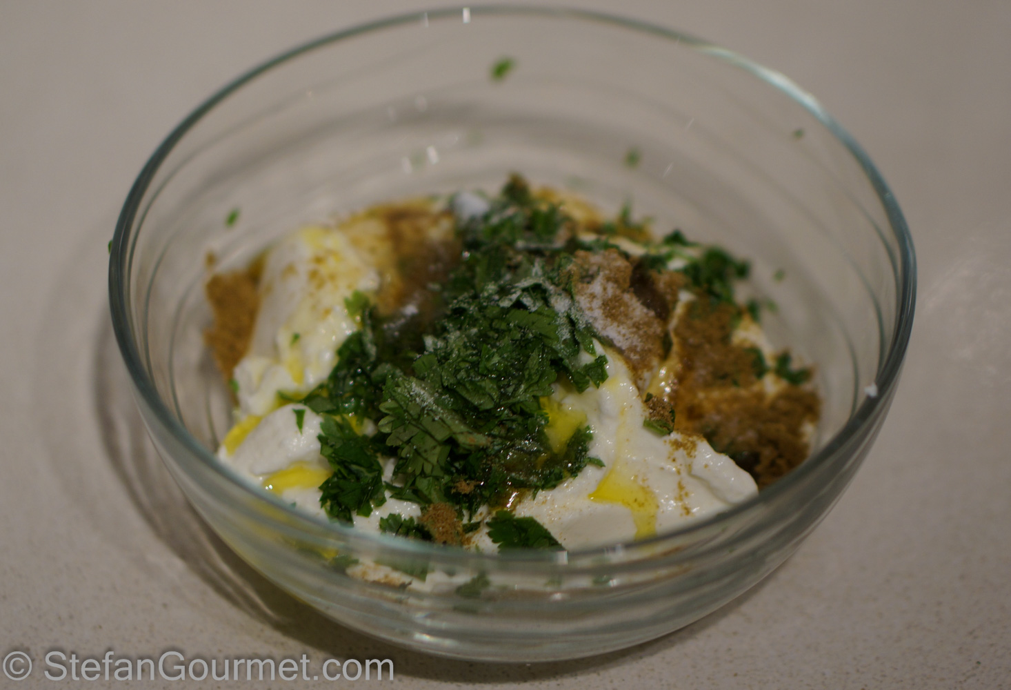 Vacuum seal the lamb shanks with the yogurt mixture. Marinate for 24 hours in the refrigerator.