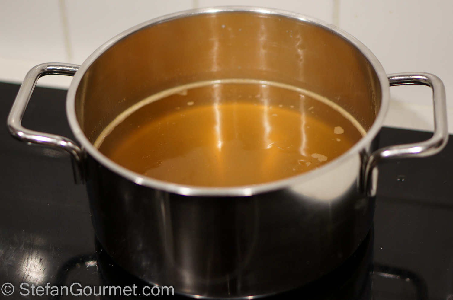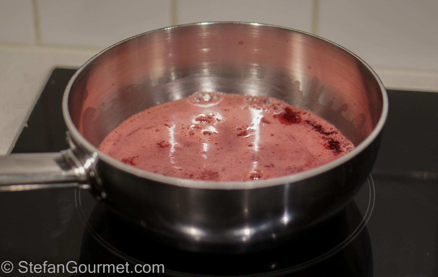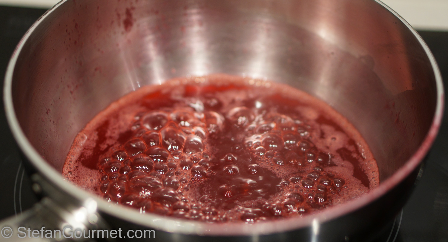 Bring the pomegranate juice almost to a boil, then turn off the heat.