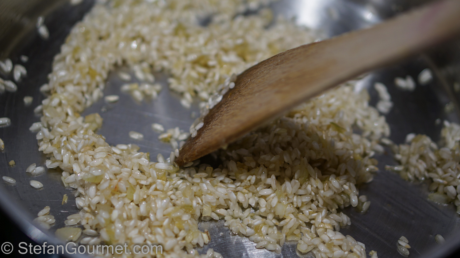 I stick to the Italian tradition of serving risotto or pasta as a course by itself (primo piatto) and not alongside meat or fish, which is served next (secondo piatto).
