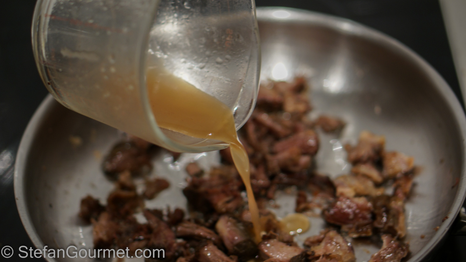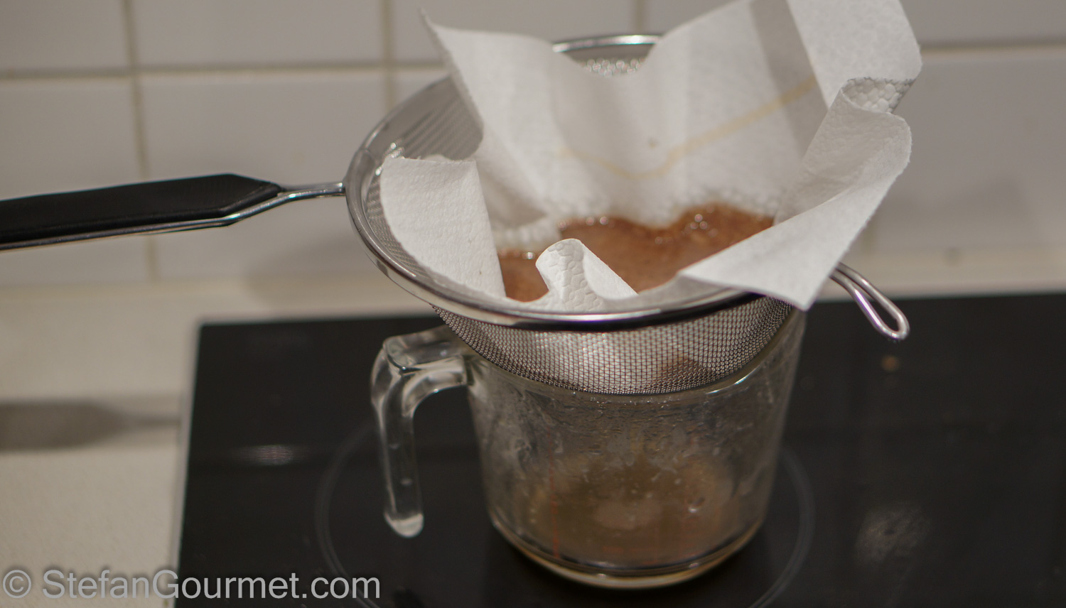 …and filtered out the coagulated proteins. This step is needed to avoid getting ‘scum’ in the sauce.