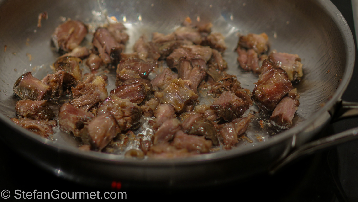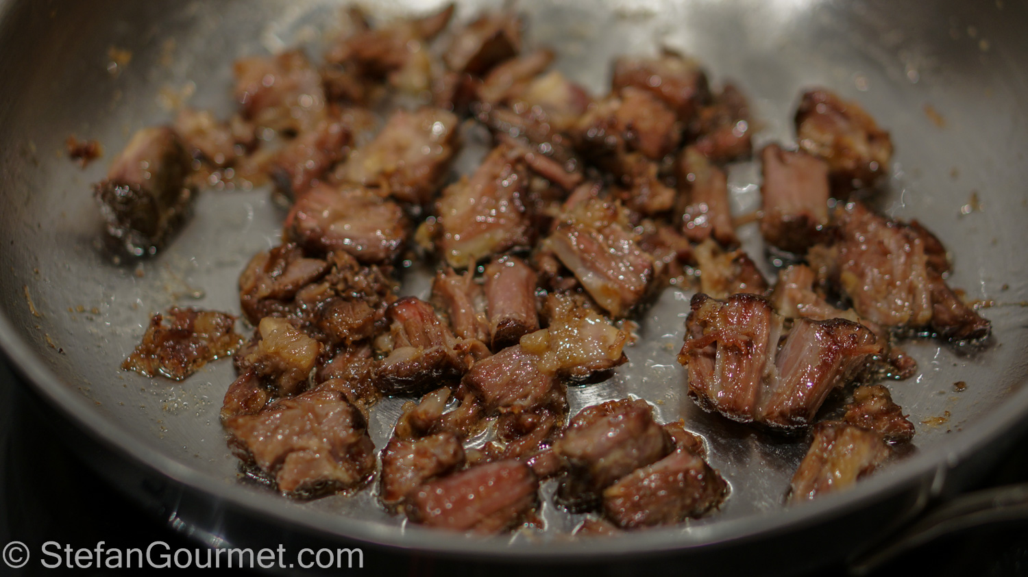 Then I slightly browned the pieces of oxtail meat in butter over high heat, just for a minute to heat them through and brown them a little. Cooking them for a longer time would dry them out.
