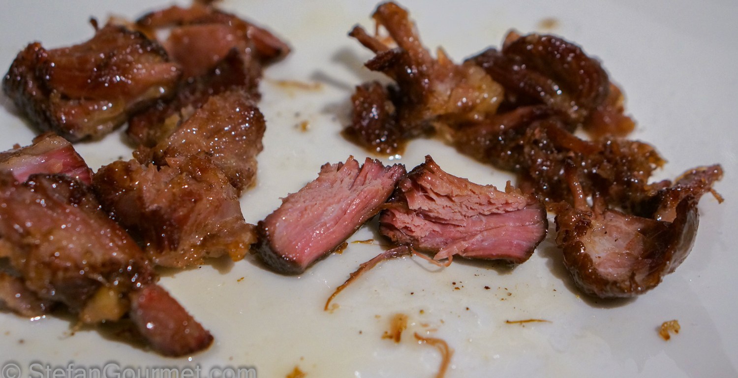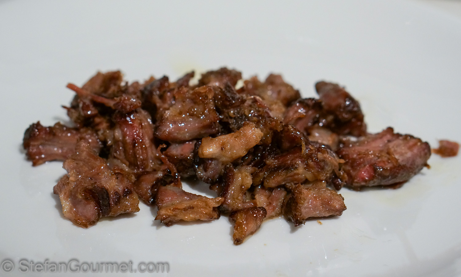 I served the meat just like that on preheated plates. It was fabulous. Tender, but still with a nice bite to it. Like braised beef, but juicier and more flavorful. I am definitely going to think of a nice dish to make with oxtail cooked sous-vide for 100 hours at 60ºC/140ºF.
