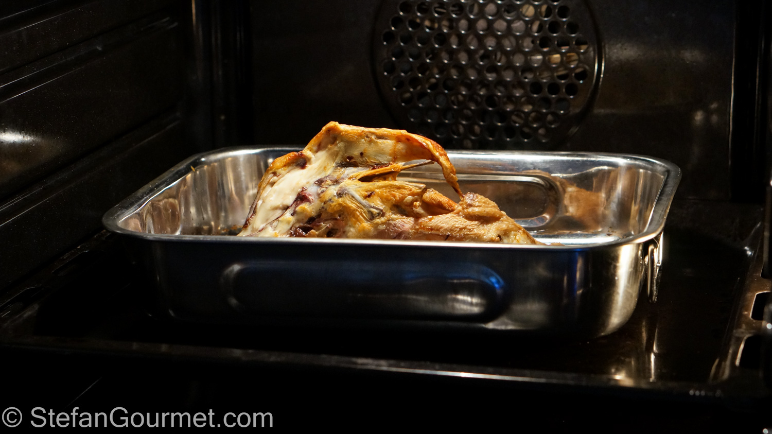 Roast the carcass for half an hour at 190ºC/375ºF.