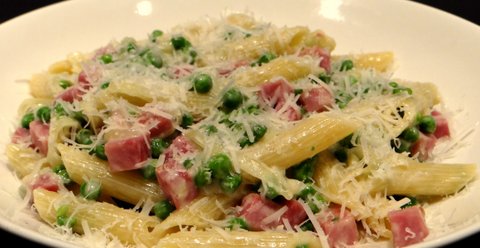 Penne with peas, ham and cream is a  simple but tasty pasta dish is great for a weekday meal, especially since all the ingredients can be purchased quite a long time in advance.