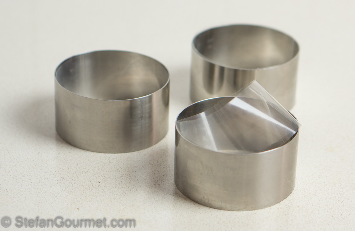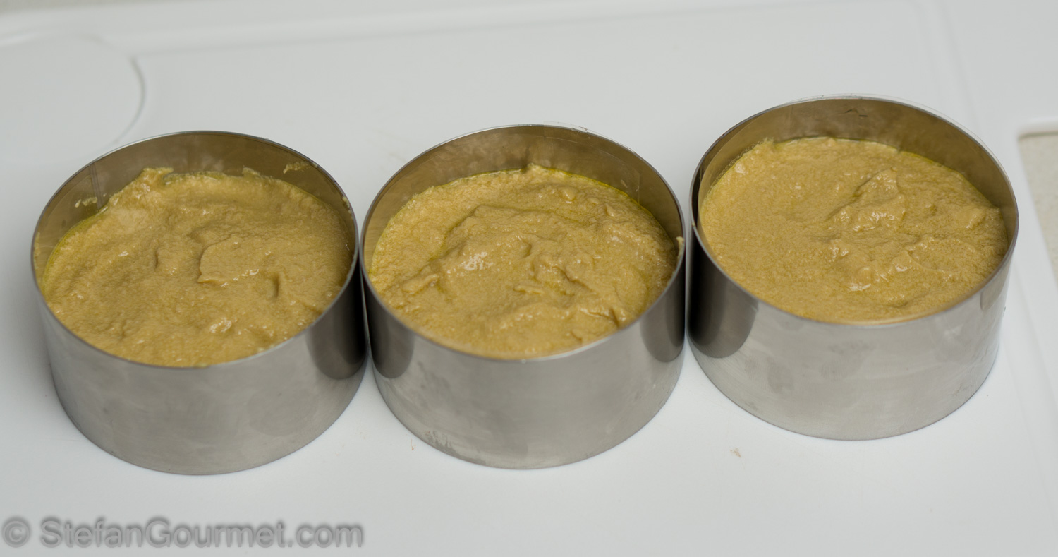 I lined the ring molds with acetate foil to make it easier to remove the molds later, but it didn’t help as much as I had hoped.