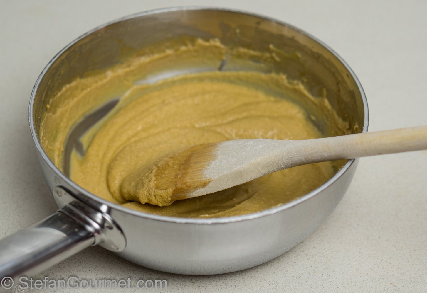 Allow the cream of foie gras to cool to room temperature, stirring now and then to prevent it from separating.
