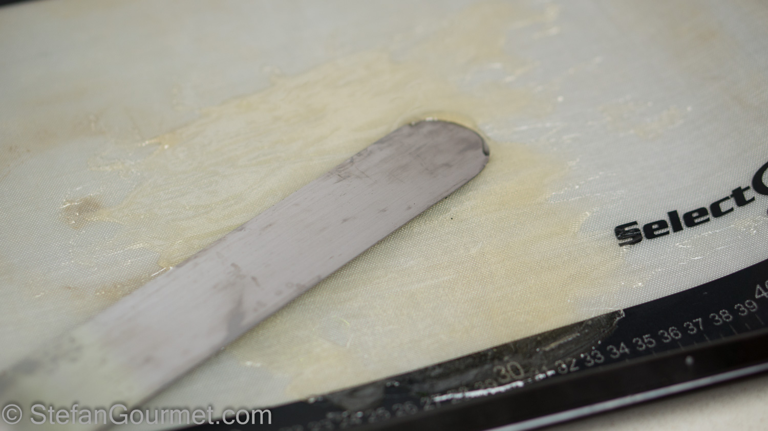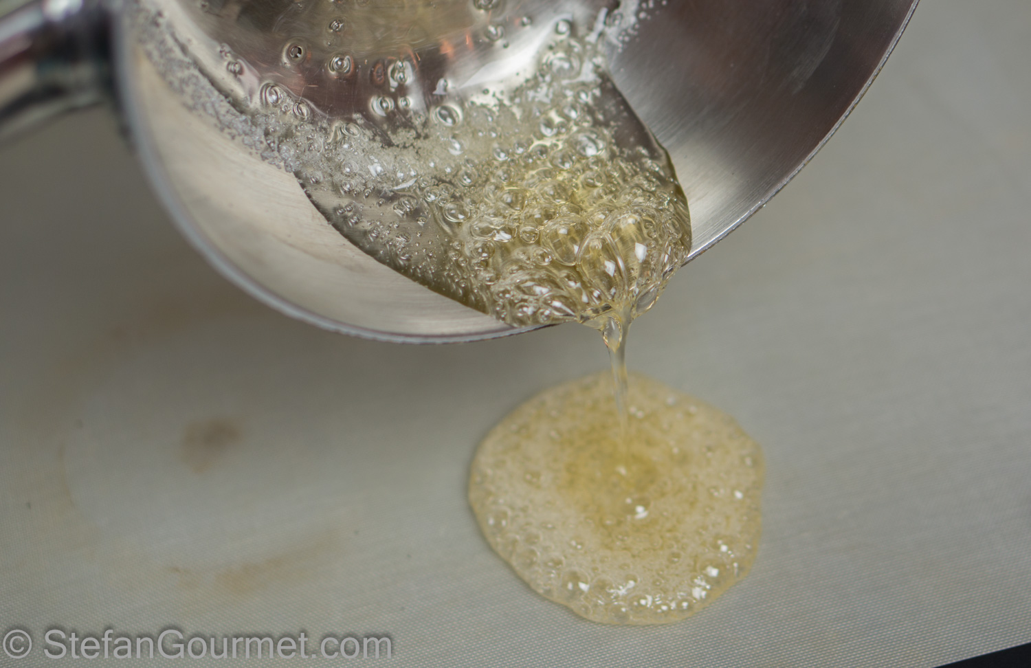 Pour the melted sugar on the preheated silicone mat.