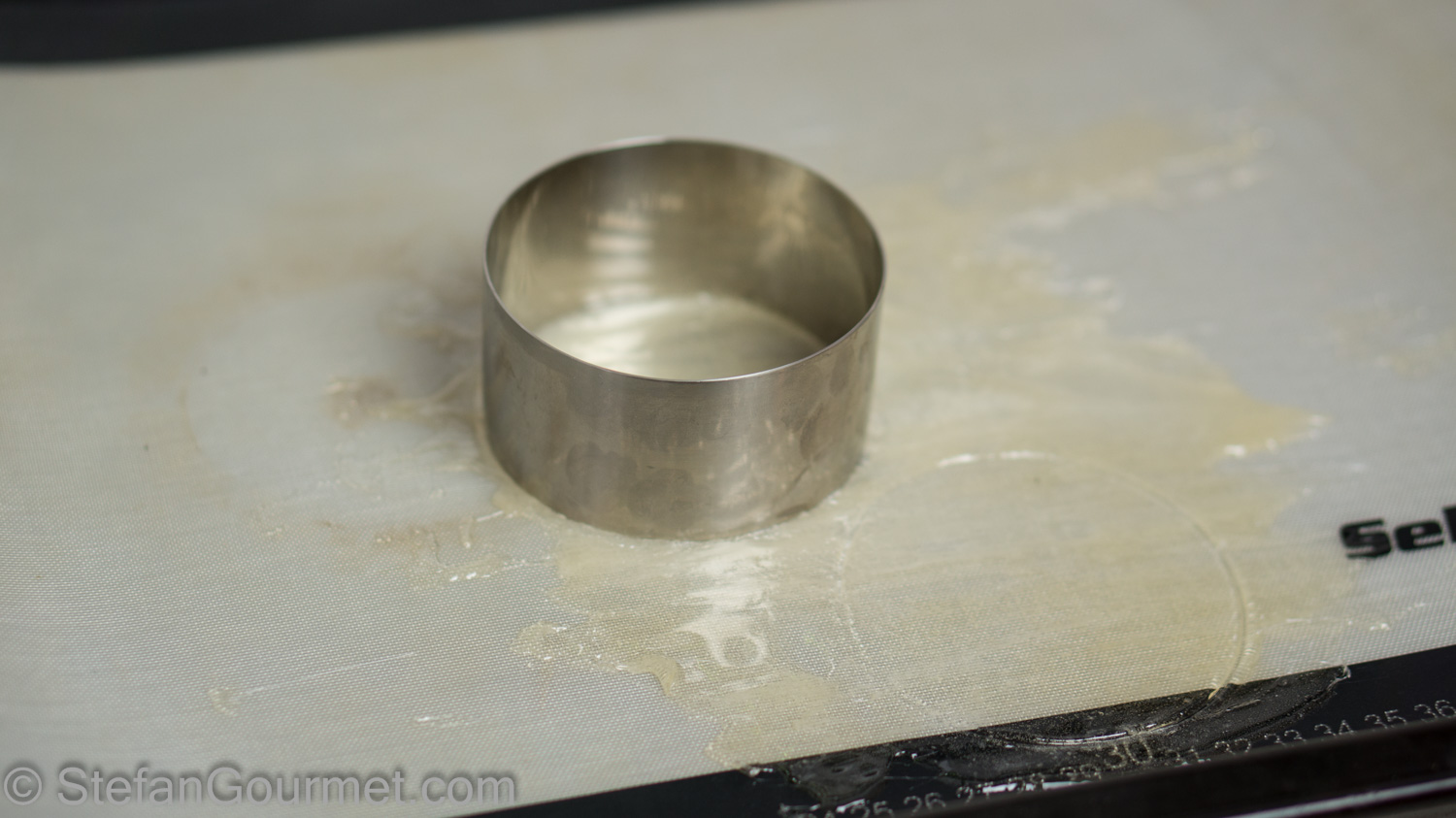 Allow the sugar to harden for a bit, then use a ring mold to cut out circles.