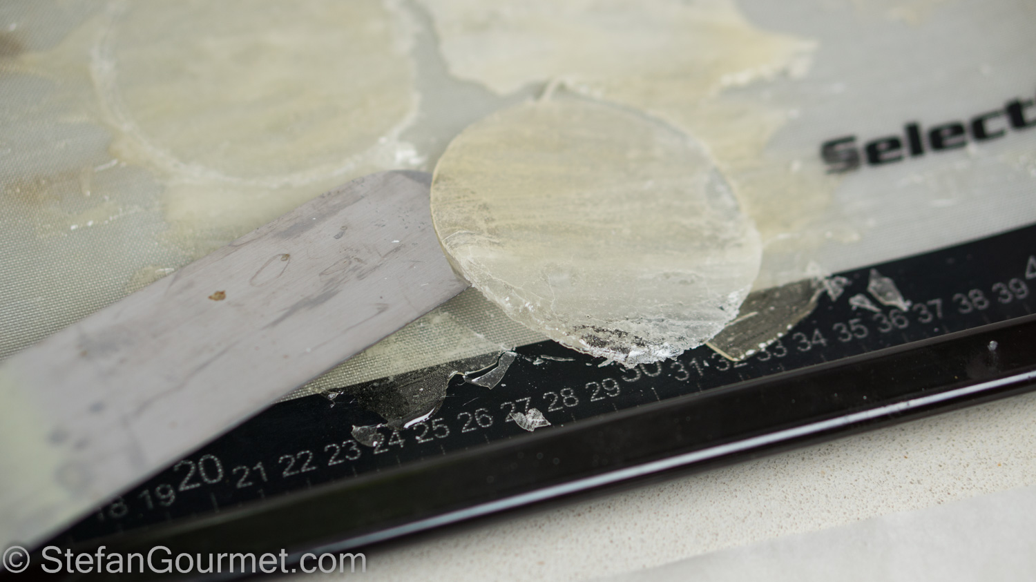 Allow the sugar to harden fully before carefully extracting the circles of crispy sugar.