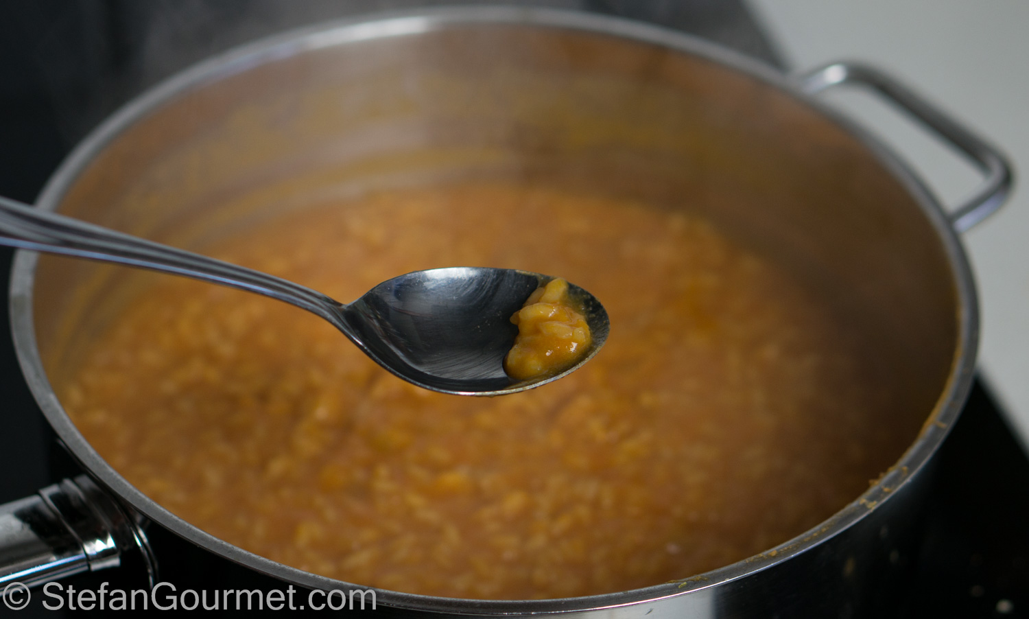 Taste whether the rice is cooked. The rice should be cooked through, but still have some bite (al dente).