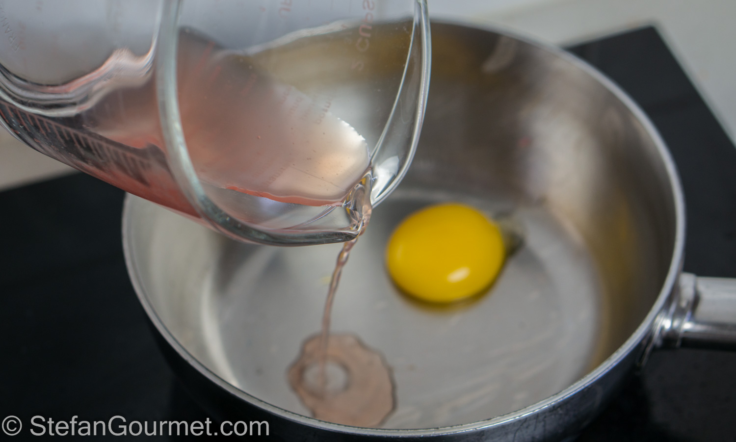 Allow the saucepan and the liquid to cool somewhat. When they are below 50ºC or 120ºF (so the egg yolk won’t cook), put the egg yolk in the saucepan and add the strained liquid.