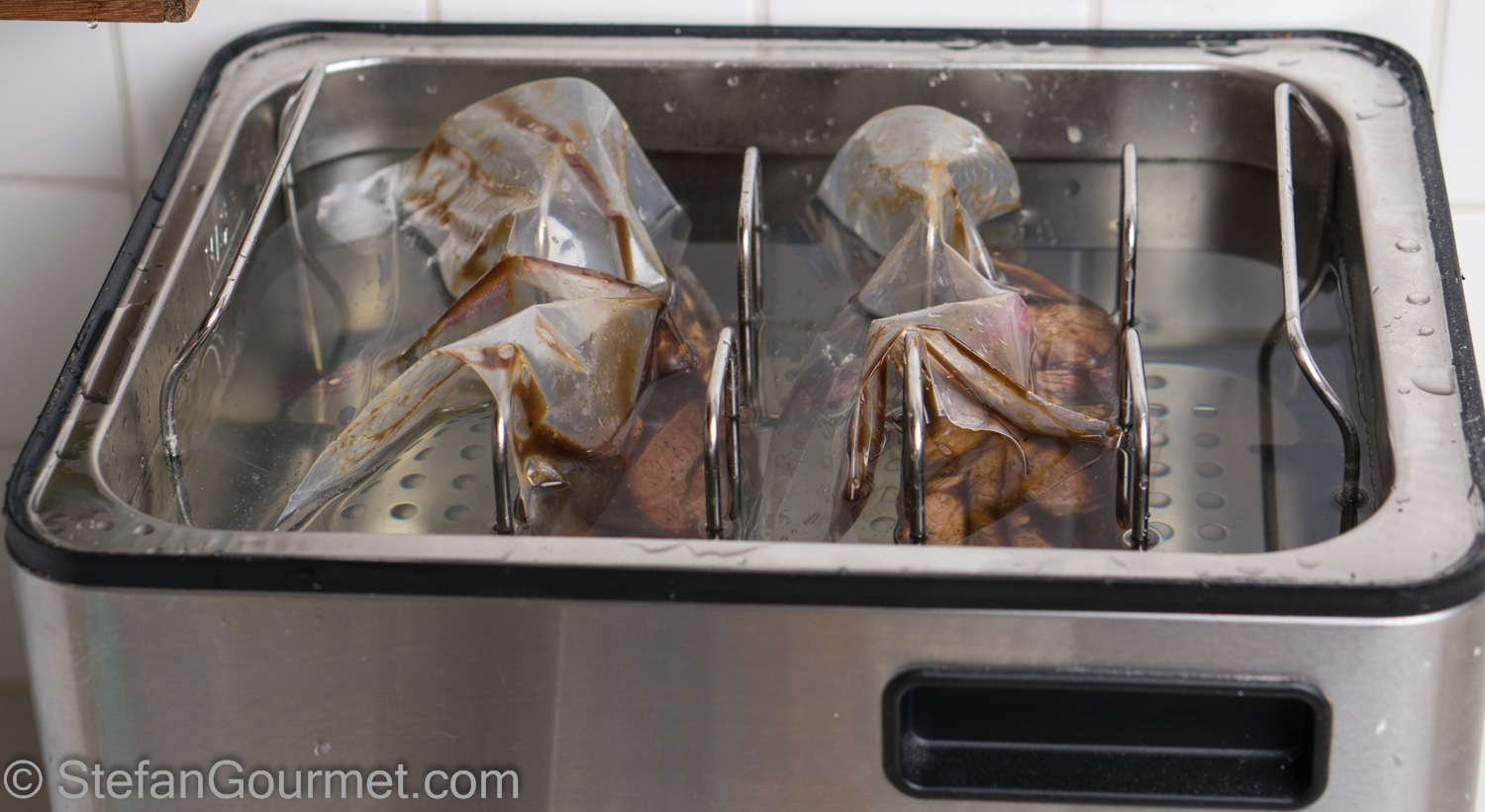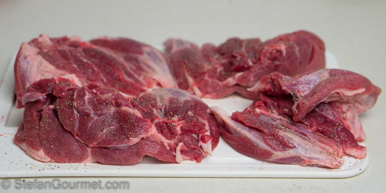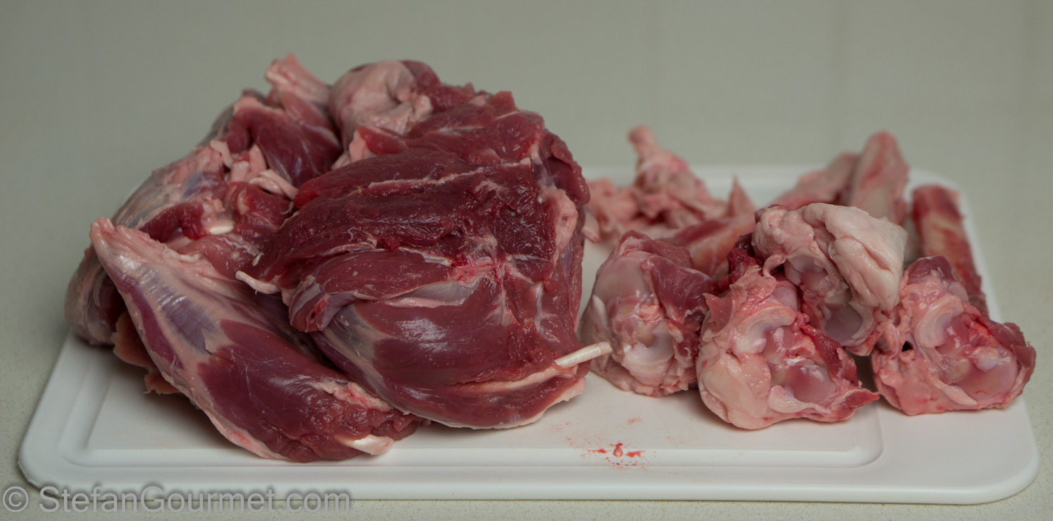 There is one tricky point about cooking lamb sous-vide and that is that ‘lamb’ is a loose term that can refer to a suckling lamb that is very young and tender (I’m not even considering unborn lamb, which is eaten in some cultures) or to a young sheep, and everything in between. This means that cooking time and/or temperature may need to be adjusted for best results. A general guideline for lamb shank that works for the local lamb here is 48 hours at 62ºC/144ºF, but for the suckling lamb (spring lamb) available right now only 24 hours is better.
