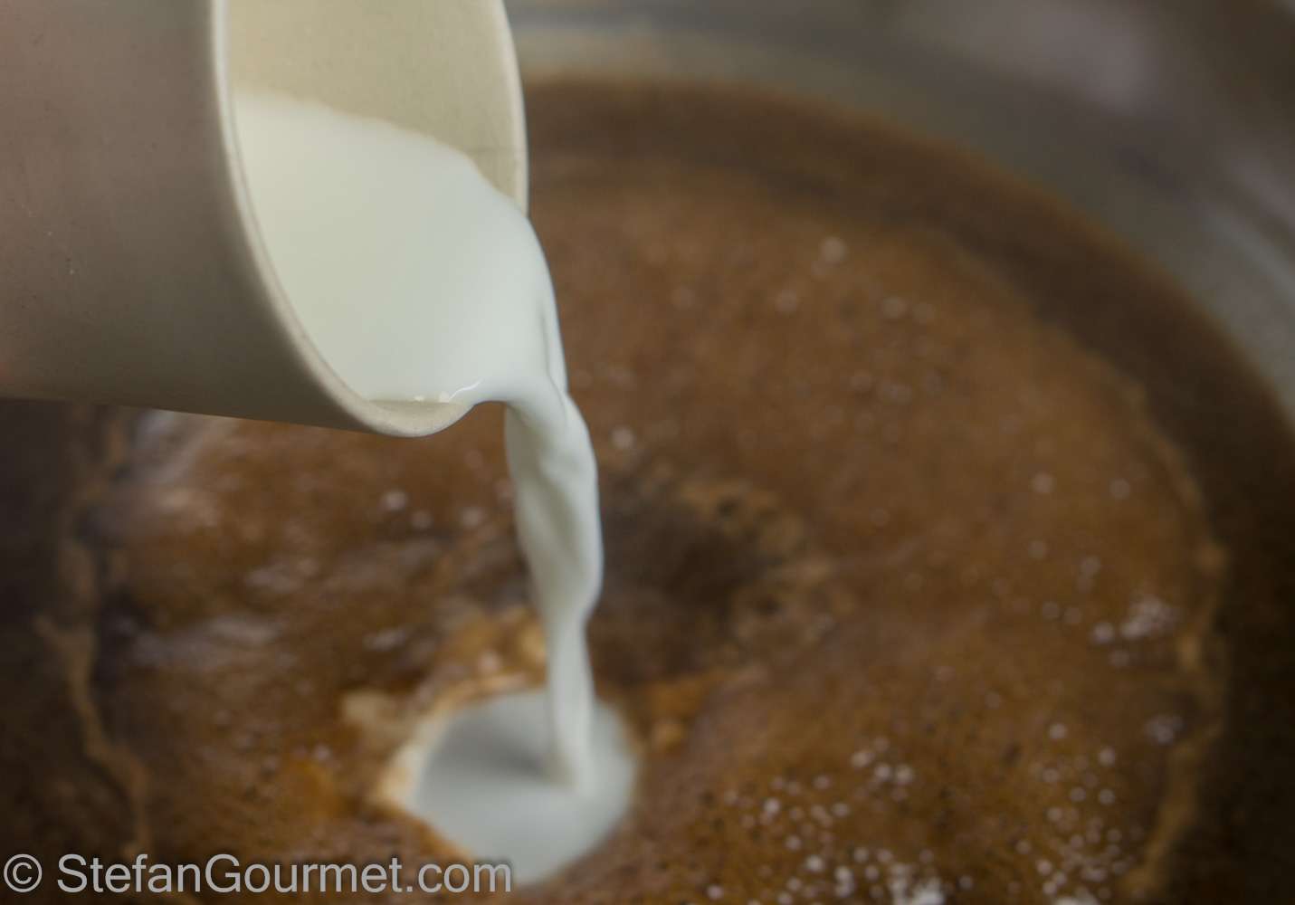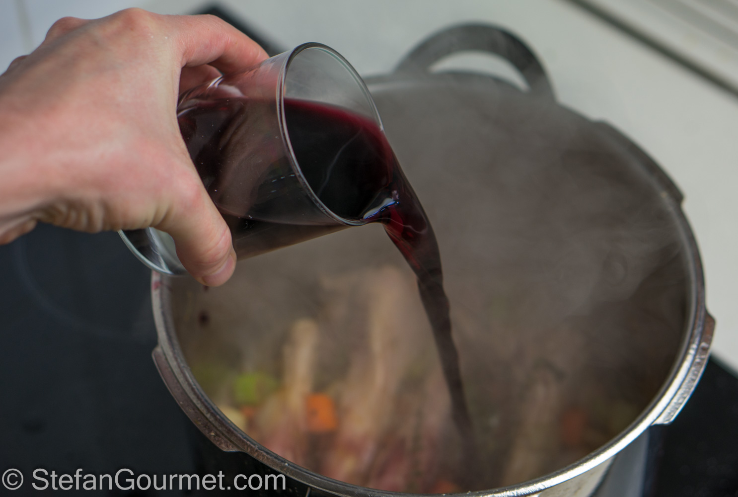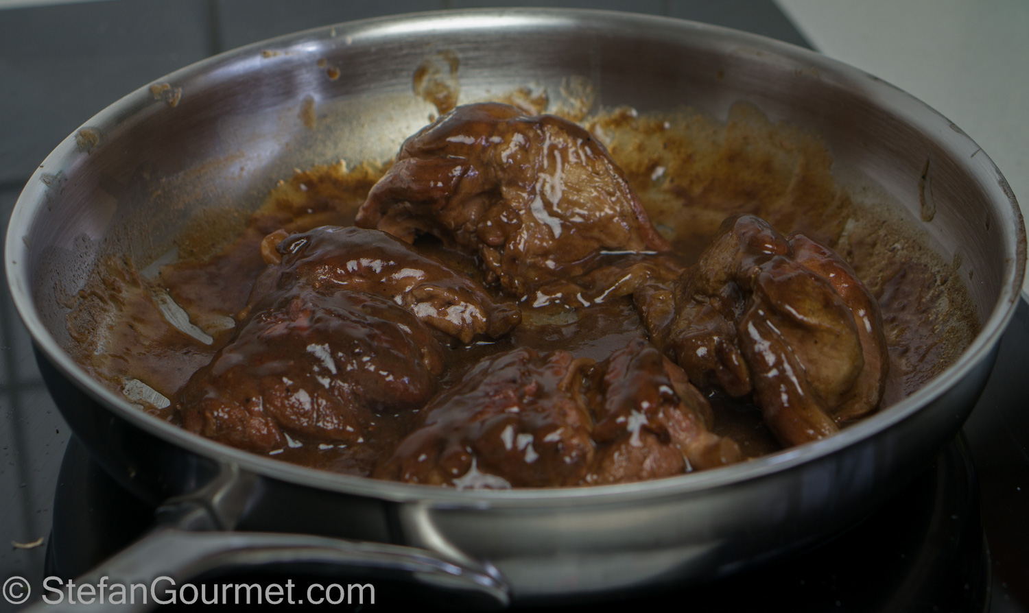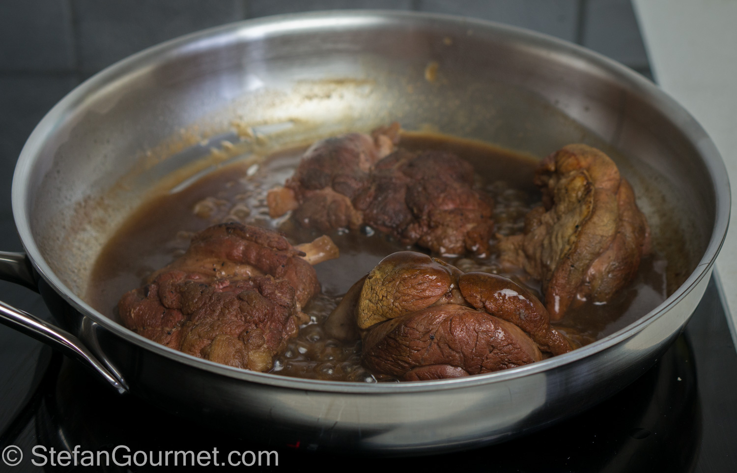 …and simmer until reduced to about 125 ml (1/2 cup). Allow to cool and remove the fat that will float on top.