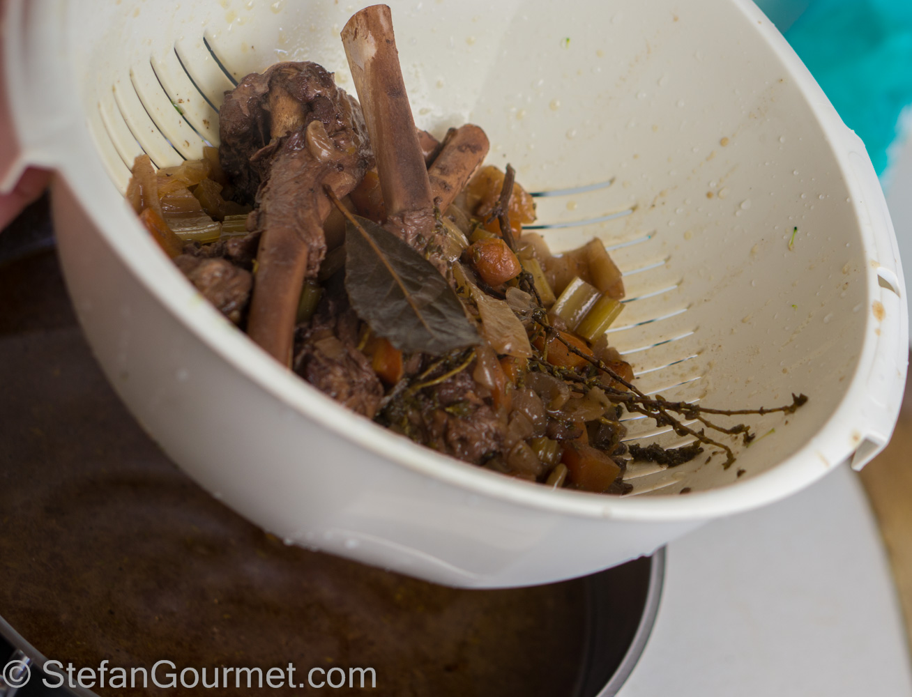 At the end of the cooking, quite a bit of juices will have been released by the lamb. It is a shame to discard them, as they are very flavorful.