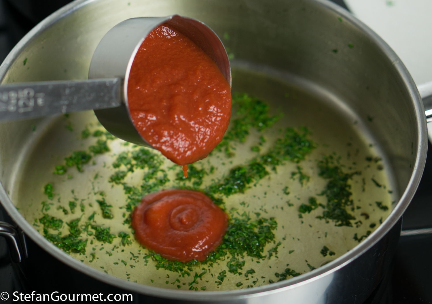 120 ml (1/2 cup) sieved tomatoes (passata, tomato puree) (optional)