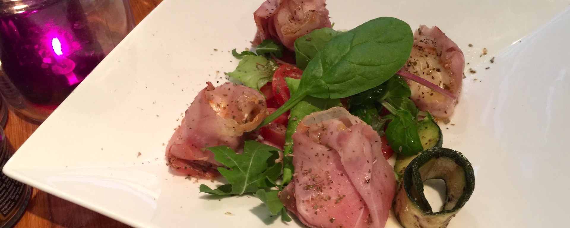 We tried two of the antipasti. These bocconcini of burrata wrapped in prosciutto, briefly baked in the oven, were a daily special. A dish like this depends on the good quality of the cheese and the prosciutto, and cooking them just right so that the prosciutto is slightly crispy and the cheese melts without becoming rubbery. And that is exactly how they were cooked. Served with an excellent bit of salad, this was a lovely dish (9/10).