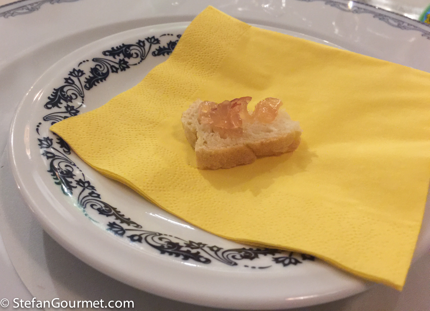 We asked Danêl to choose some dishes for us. He picked two antipasti, two primi and one secondo. He suggested we try the house red, a 2012 Refosco dal Peduncolo, which was very nice. Refosco is one of the local grapes from Friuli. We started with an aperitif of another local grape, a sparkling Ribolla Gialla.
