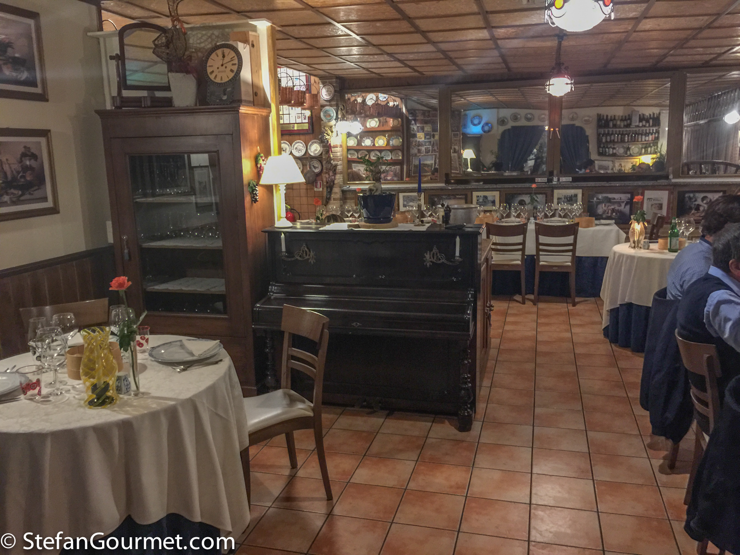 During our travels in Italy, we always try to include as many trattorie with 3 gamberi from Gambero Rosso as possible. Each year, leading gourmet magazine Gambero Rosso publishes a restaurant guide and there are only 18 trattorie in all of Italy that get the highest score. In Friuli there is one: Ai Cacciatori in Cavasso Nuovo, in the beginning of the mountains West of Udine. This is the trattoria of Danêl and Angelina Corte: he takes care of the dining room and she cooks.