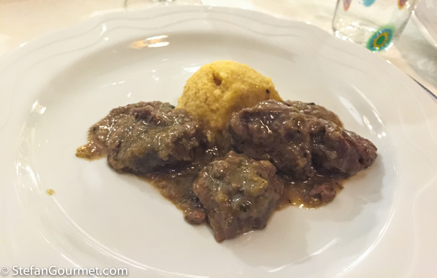 Secondo: stewed mountain goat with a delicious sauce and polenta…