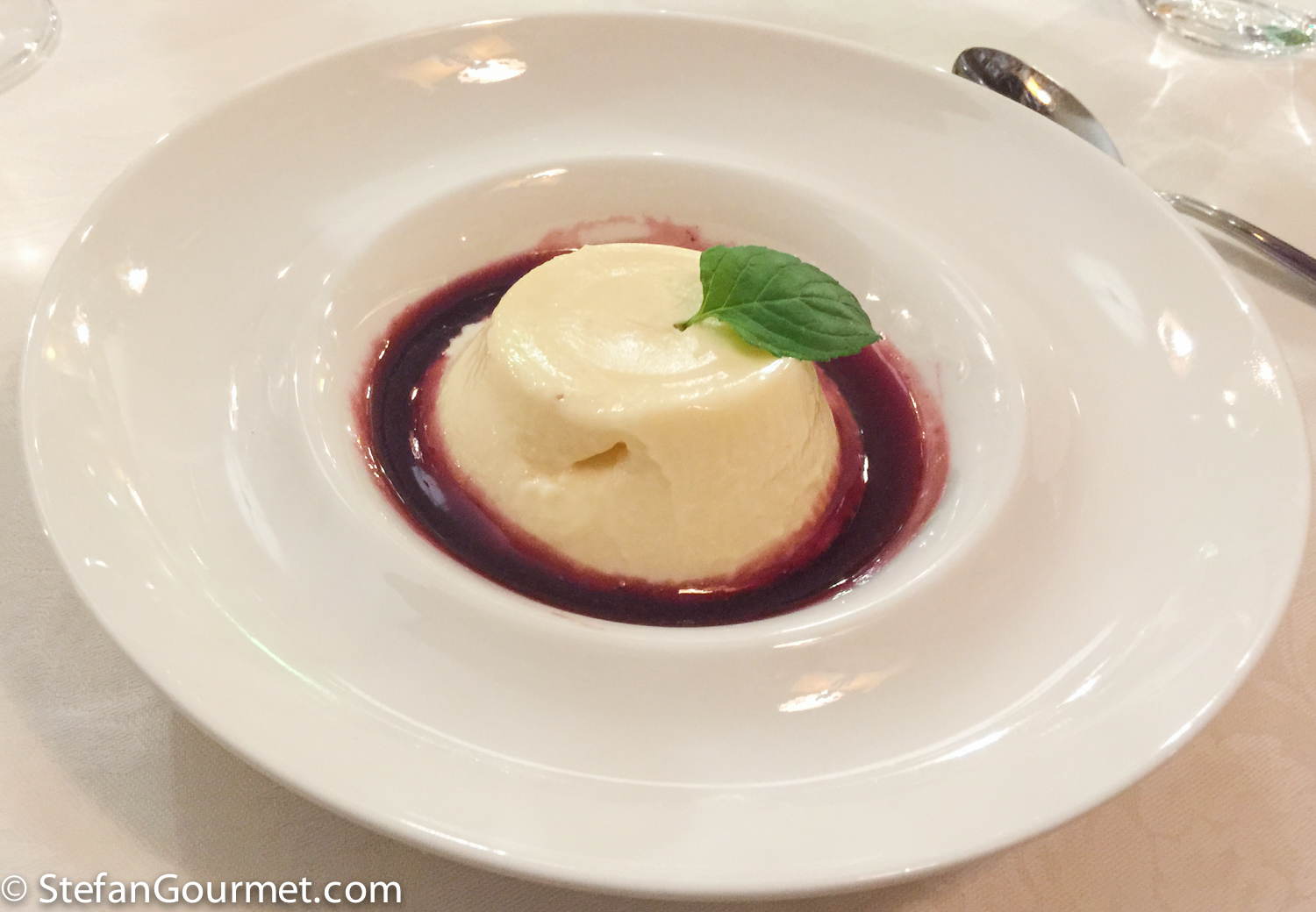 And finally dessert: cream of mascarpone with a berry coulis. 8/10 We had a glass of Ucelut with this, a dessert wine made from a local grape.