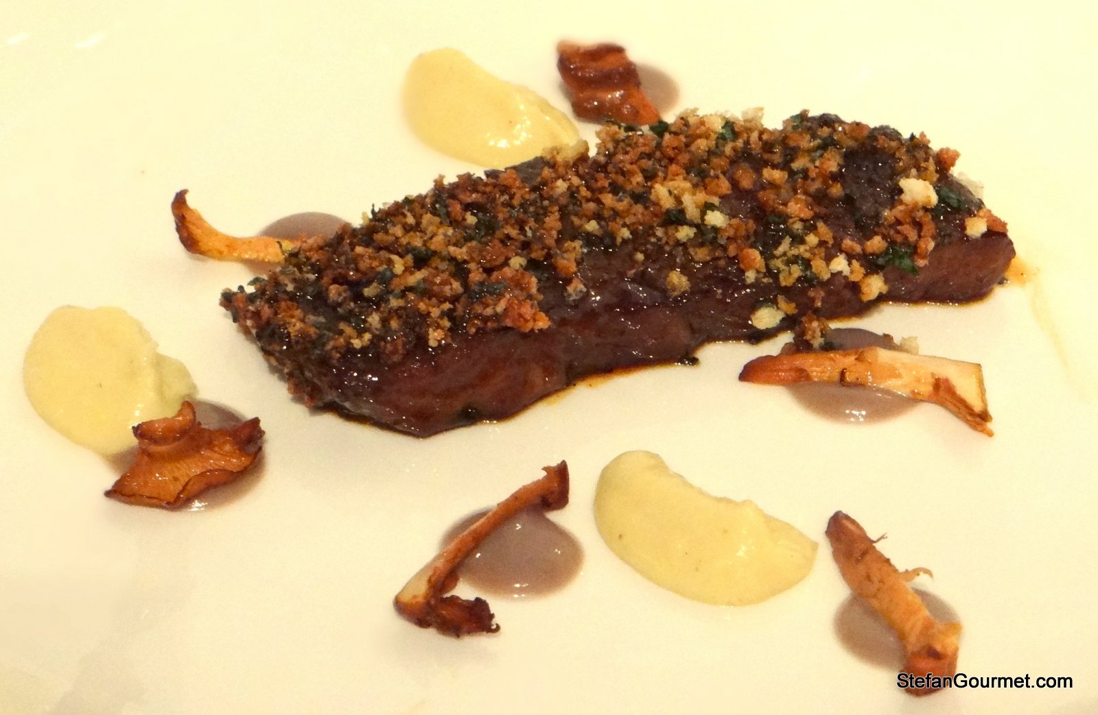 Contrary to popular belief, I mostly cook relatively simply dishes. Sometimes I like to experiment with something a bit more elaborated, like this parsley-crusted steak with mushroom ketchup and garlic puree. For me the main success of this dish was the crust. The wagyu flank steak was very tender and flavorful because it had been cooked sous-vide, and had additional flavor because it was finished on a charcoal grill. The tender beef was complemented very nicely by the crunchy parsley crust. The combination with the mushroom ketchup, mushrooms, and the garlic puree also worked very well.
