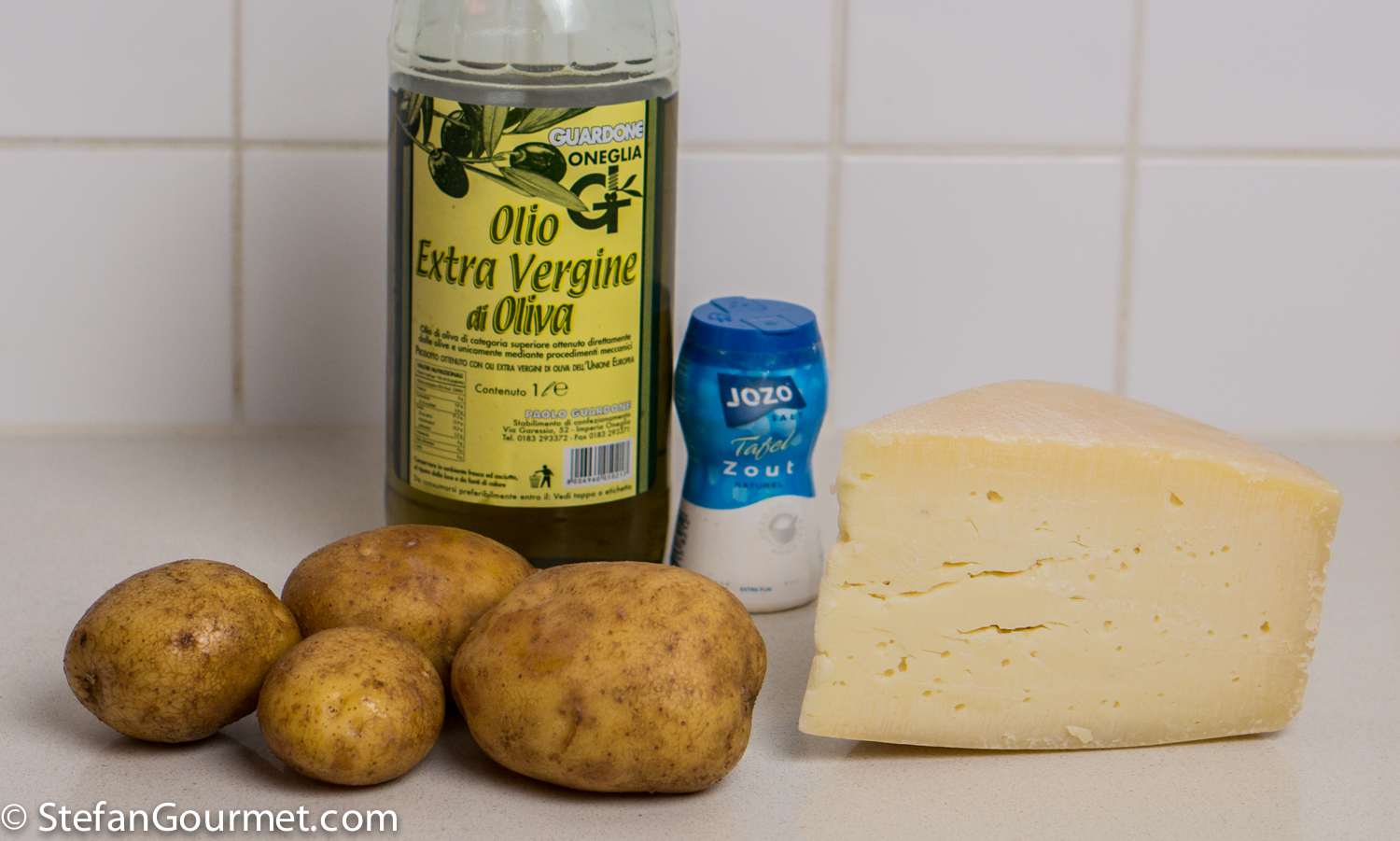 I had brought a chunk of Montasio cheese from our trip to Friuli so I could make authentic frico. You could also use another hard type of cheese and it will be just as good, just not authentic.