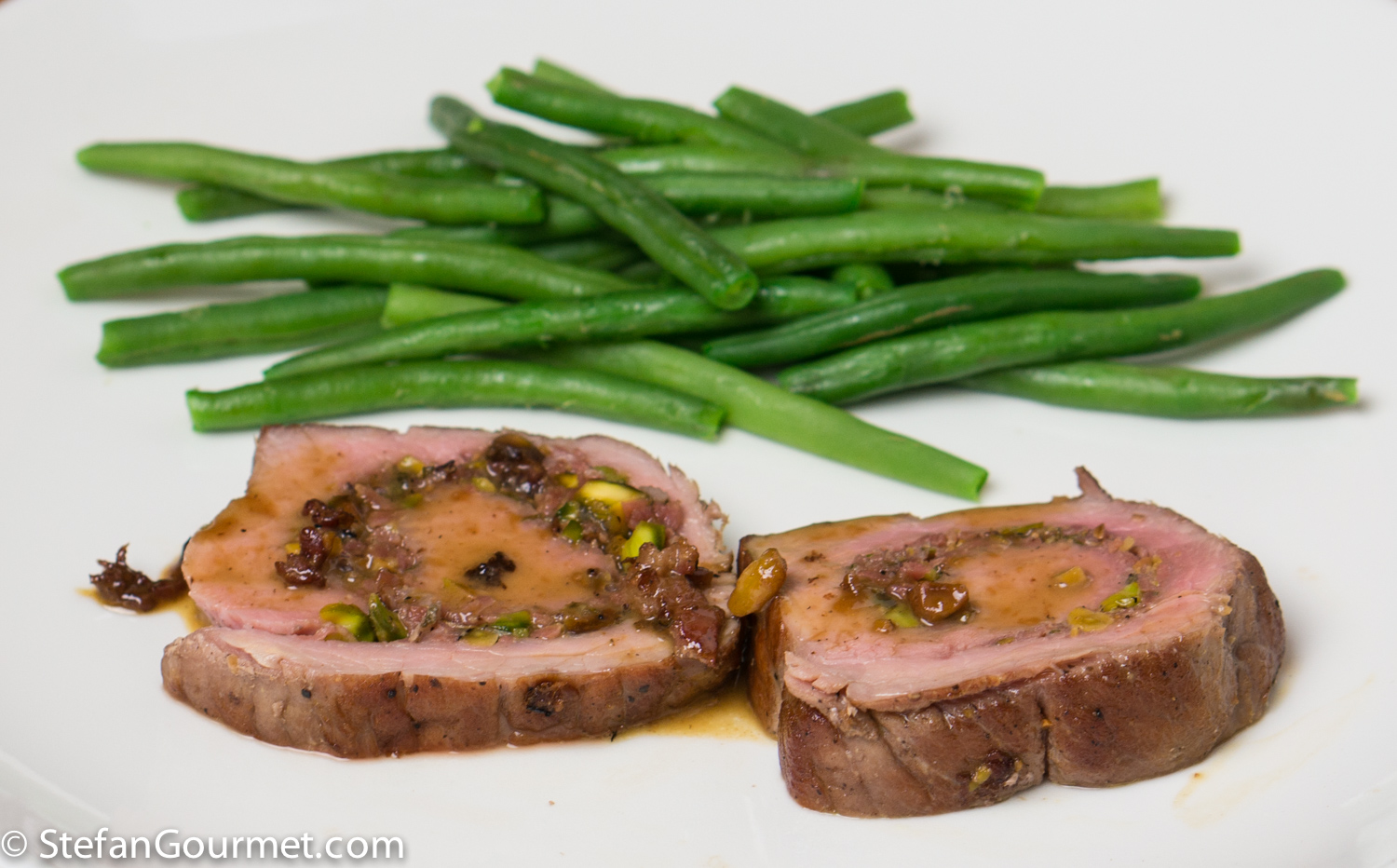 This dish was inspired by a pork roulade stuffed with pistachios and prosciutto that Marina made for us when we visited. I thought it would be nice to make it with veal, and cook it sous-vide. That way, the meat is cooked perfectly from edge to edge, tender, and juicy. You could also cook this roulade in the oven, but be careful not to overcook it as that would dry it out. This was also a nice use for part of the huge chunk of prosciutto di San Daniele that we had brought home from San Daniele.