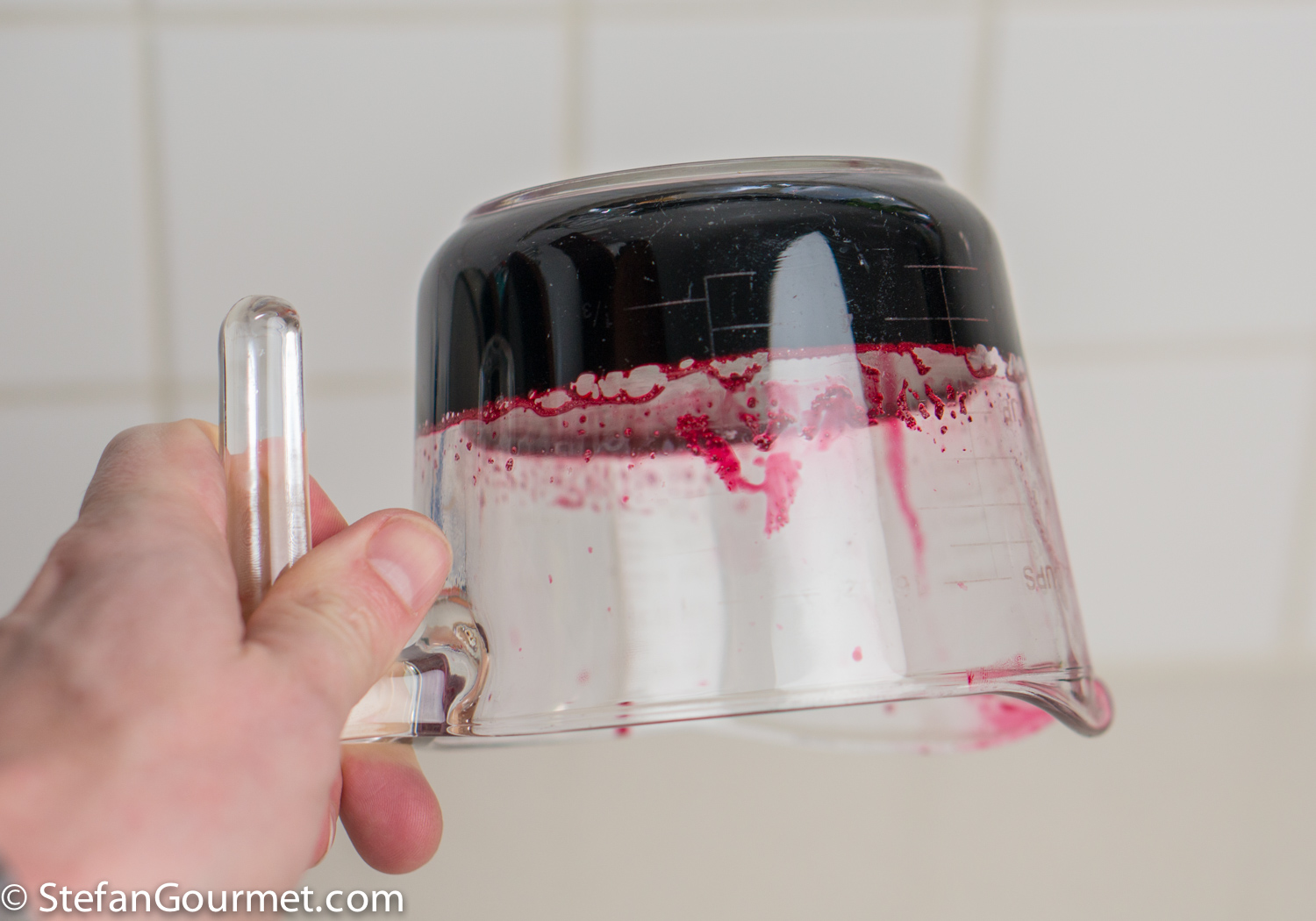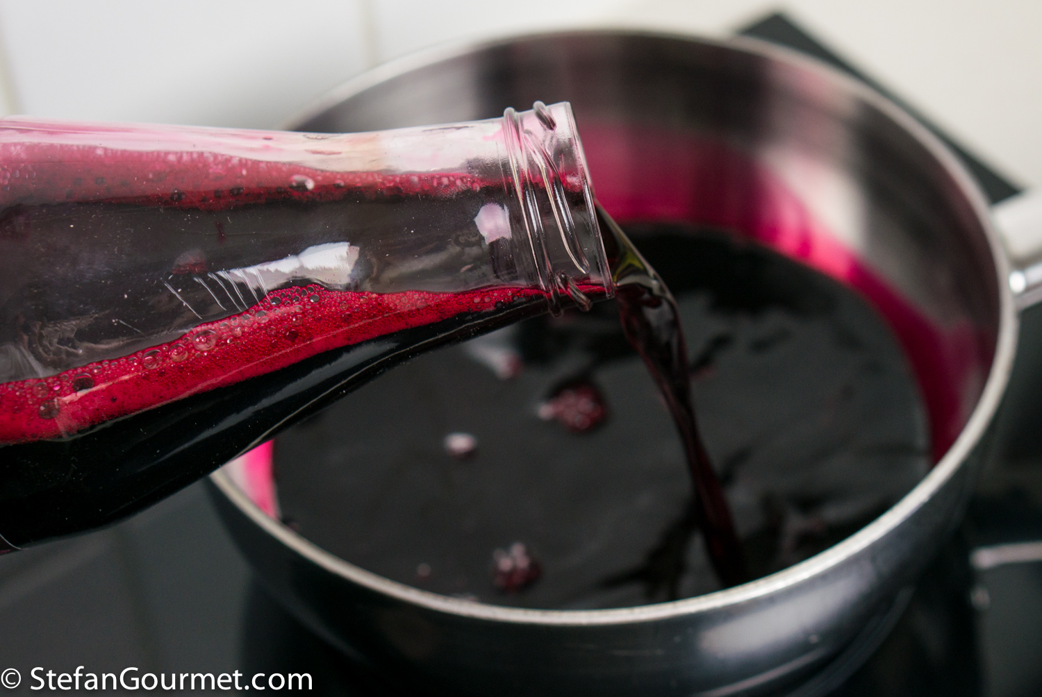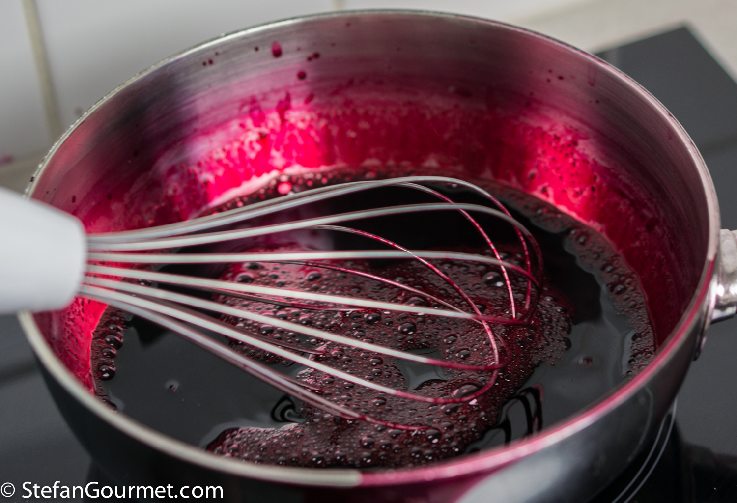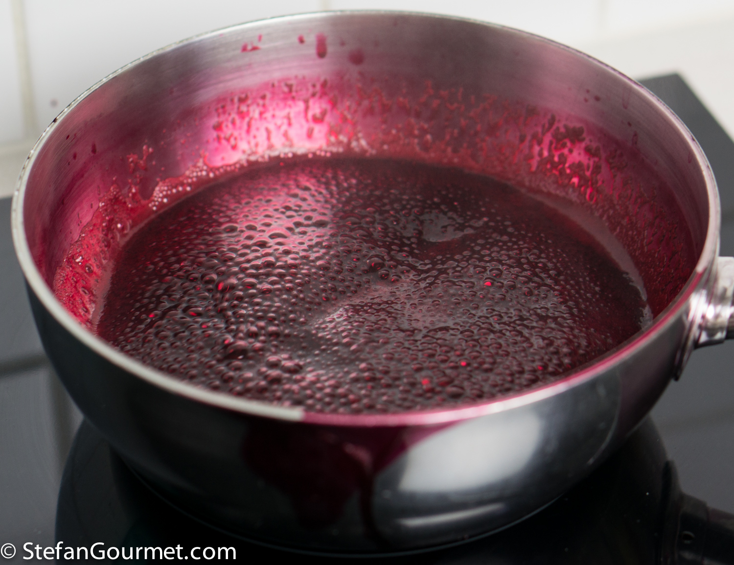 I’ve chosen to concentrate the beetroot flavor by reducing 3 cups of beetroot juice to 1 cup before turning it into a jelly. This makes the flavor more concentrated and sweeter. You could also just use a single cup of beetroot juice and leave out the vinegar. This will make the beetroot fresher and earthier, but also less pronounced. I’ve used store-bought beetroot juice, because I do not own a juicer (yet). If you do own a juicer, by all means juice the beets yourself.