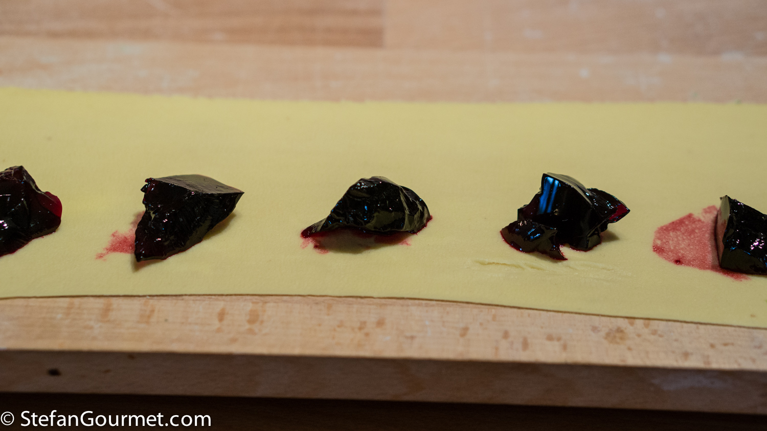The beetroot jelly will set once it has cooled below 35C/95F. Cover and refrigerate until you are ready to fill the ravioli.