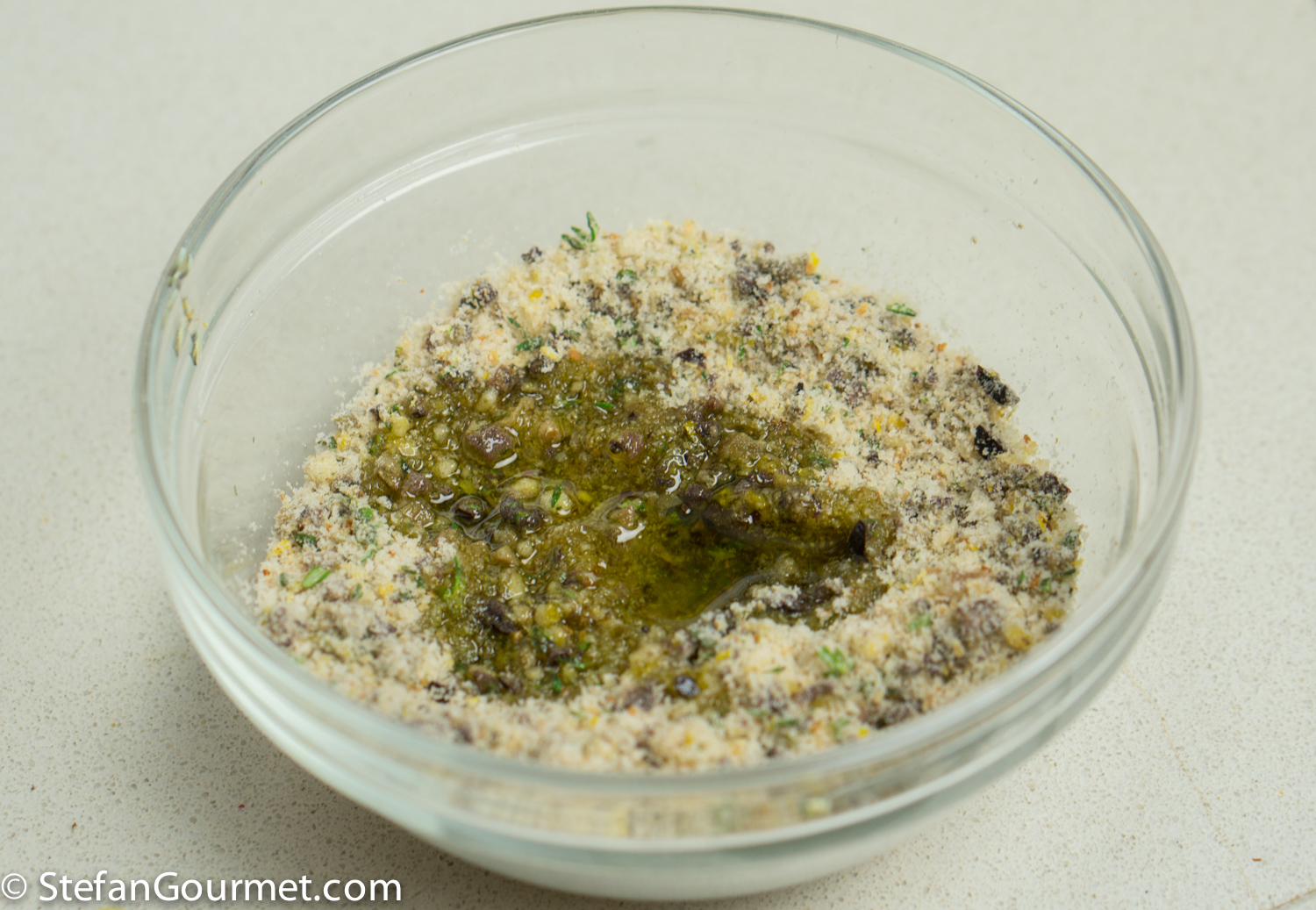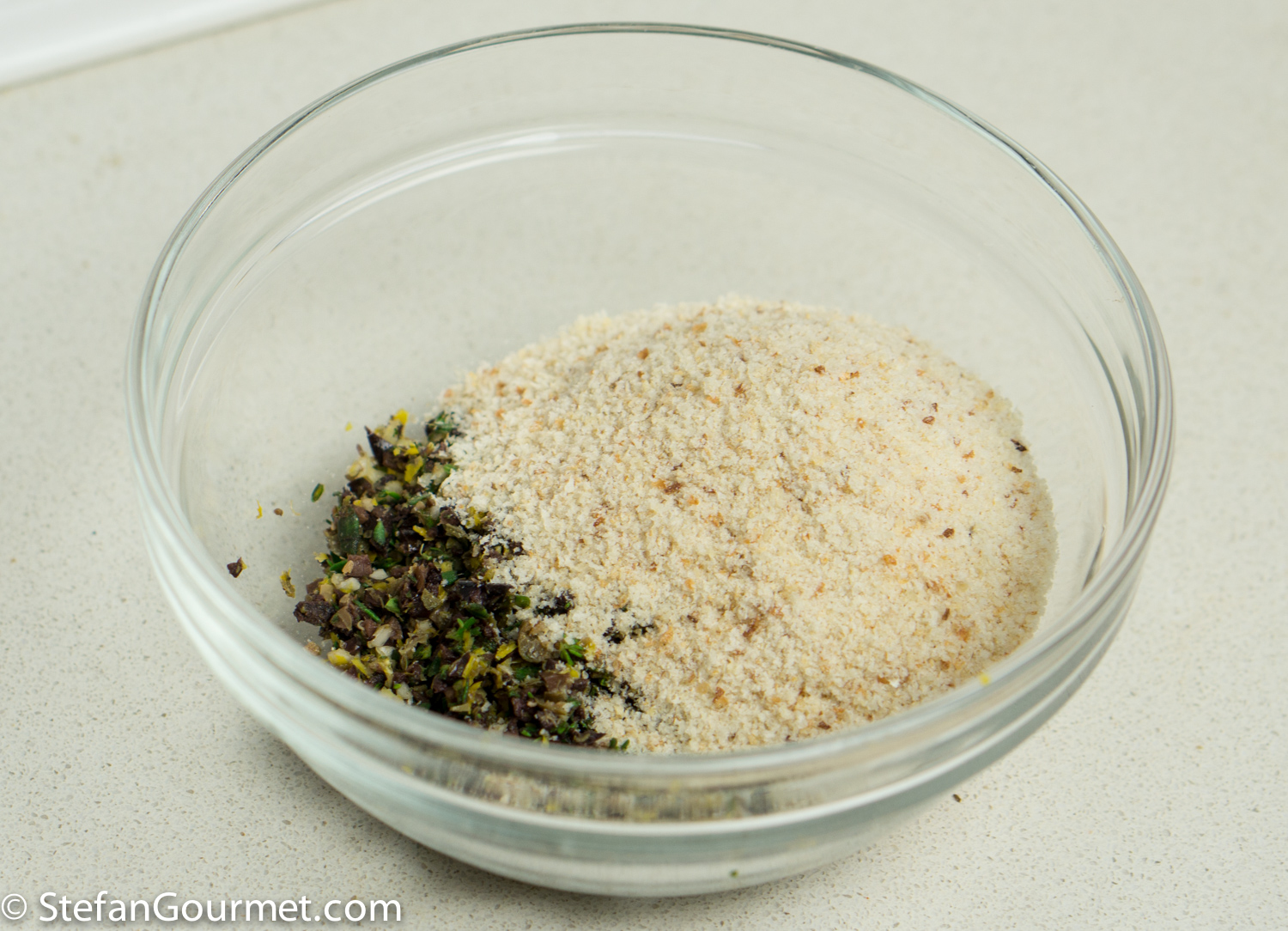 Combine the chopped flavors with 4 tablespoons of dried breadcrumbs.