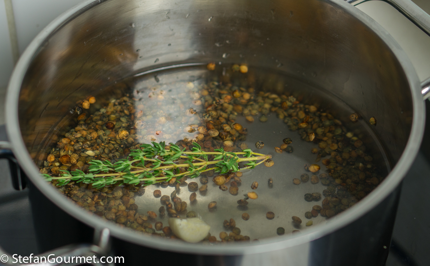 Put the lentils in a saucepan and cover them with ample water. Do not add salt.