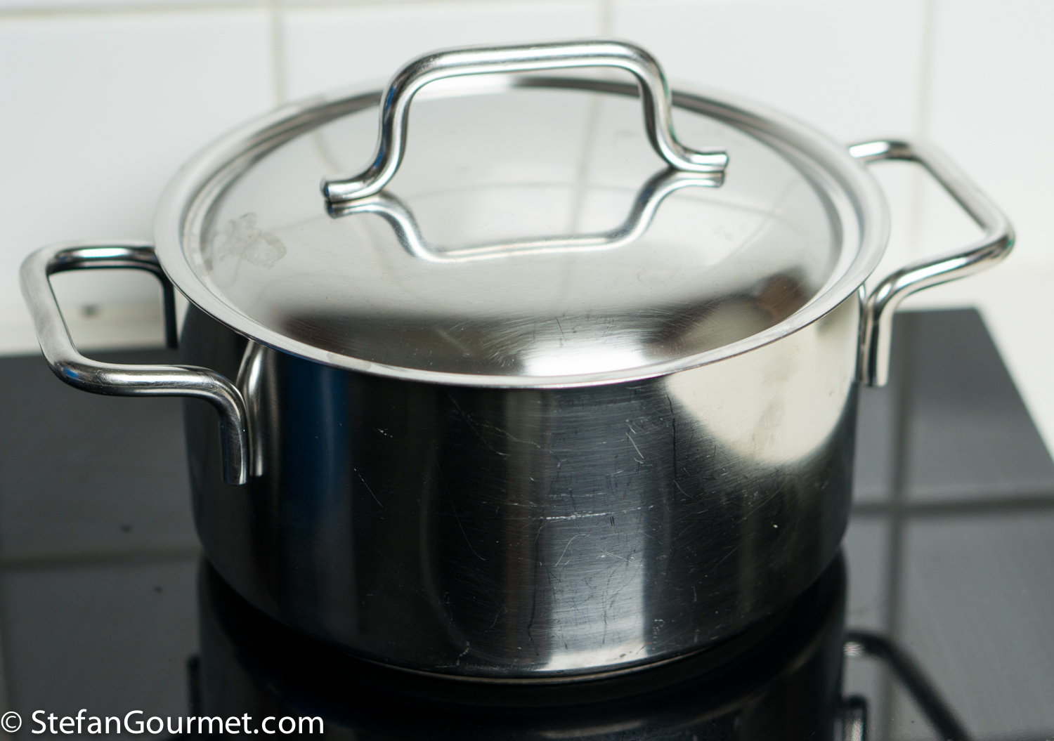 Bring to a boil, reduce the heat to keep the water boiling gently.