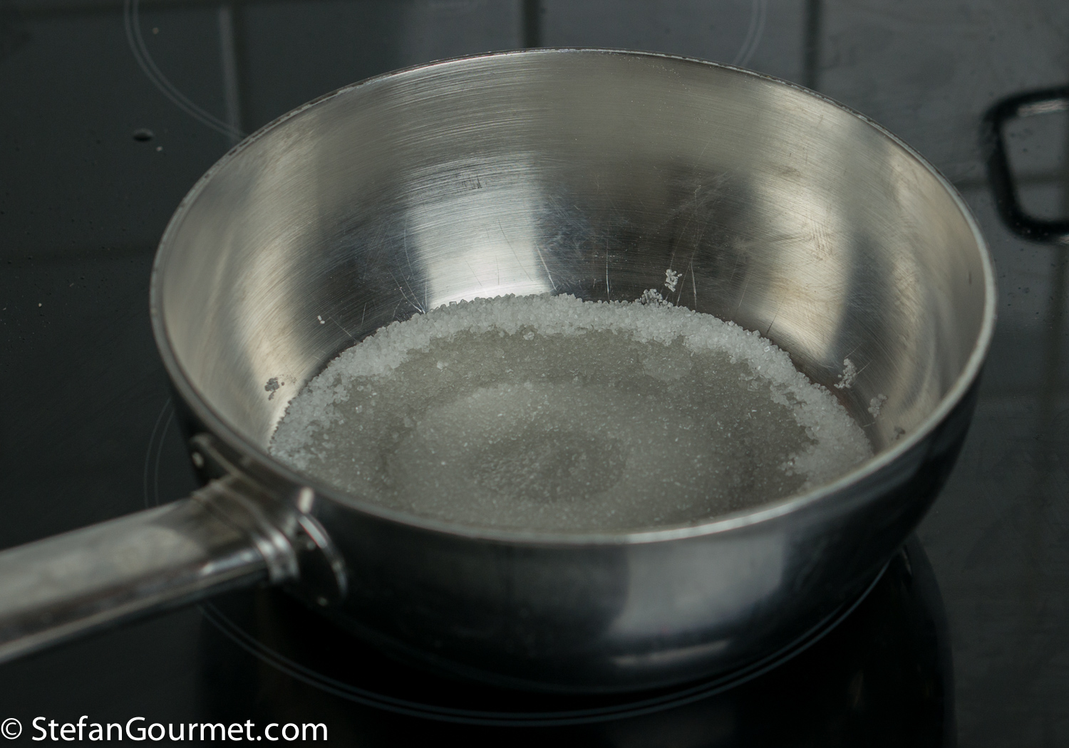 To make the caramel, put 75 grams of sugar in a saucepan with just enough water to let it dissolve.