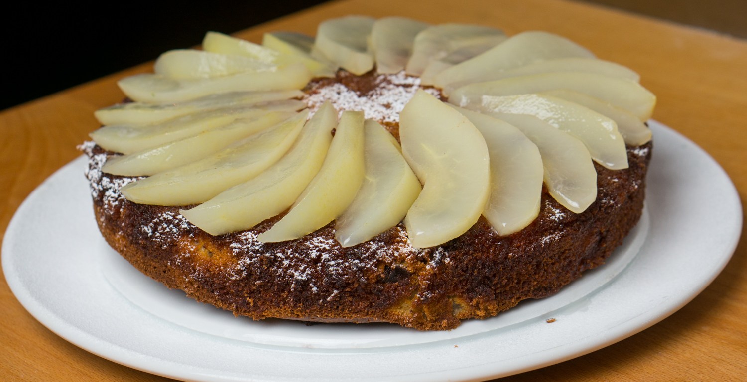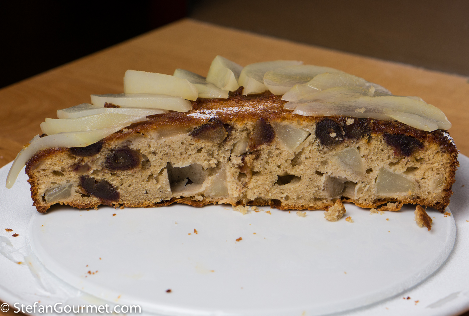 The recipe for this cake with pears and dates is from Tuttacronaca, an Italian blogger who has unfortunately stopped blogging. It has some similarities to the sticky date pudding I posted recently, as it also has dates, caramel, and cognac. The addition of pears freshens up the dessert, and leaving out the caramel sauce also makes it lighter.