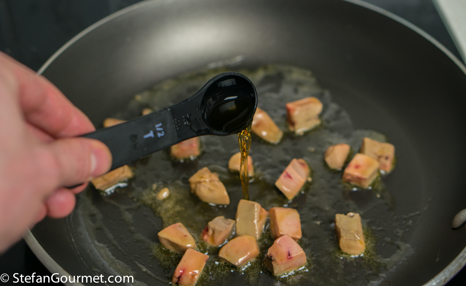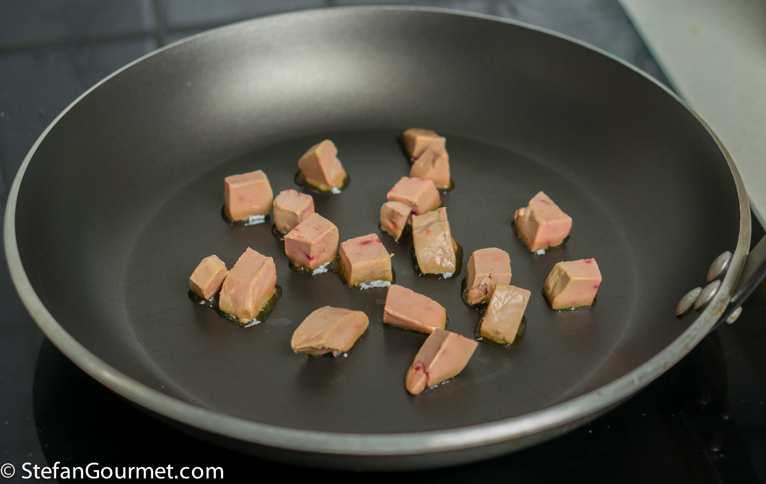 When the foie gras starts to melt, add a tablespoon of cognac.