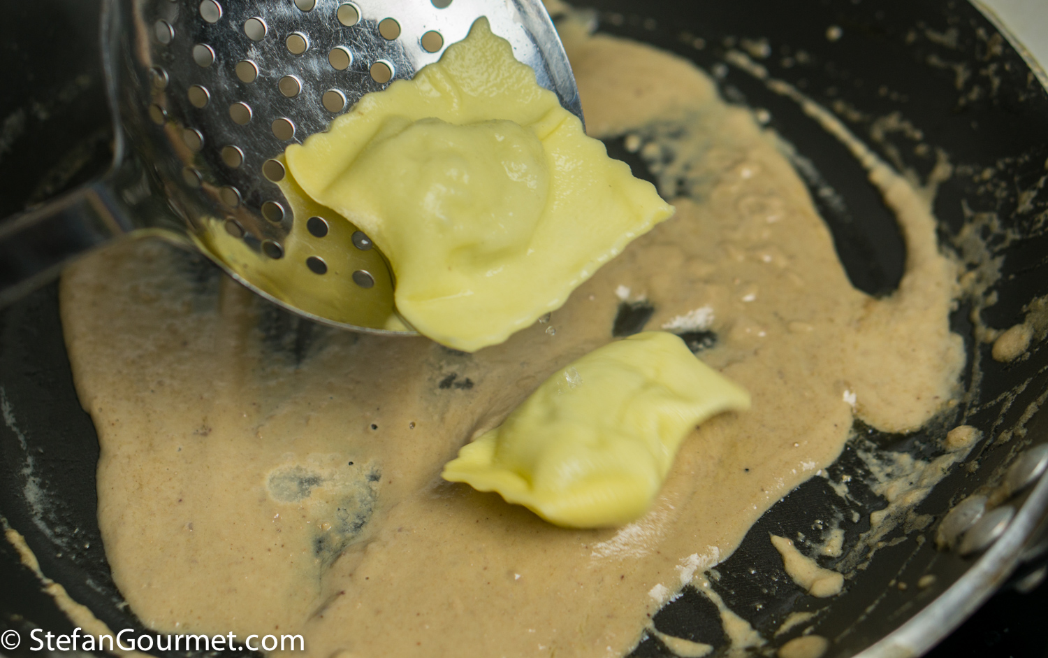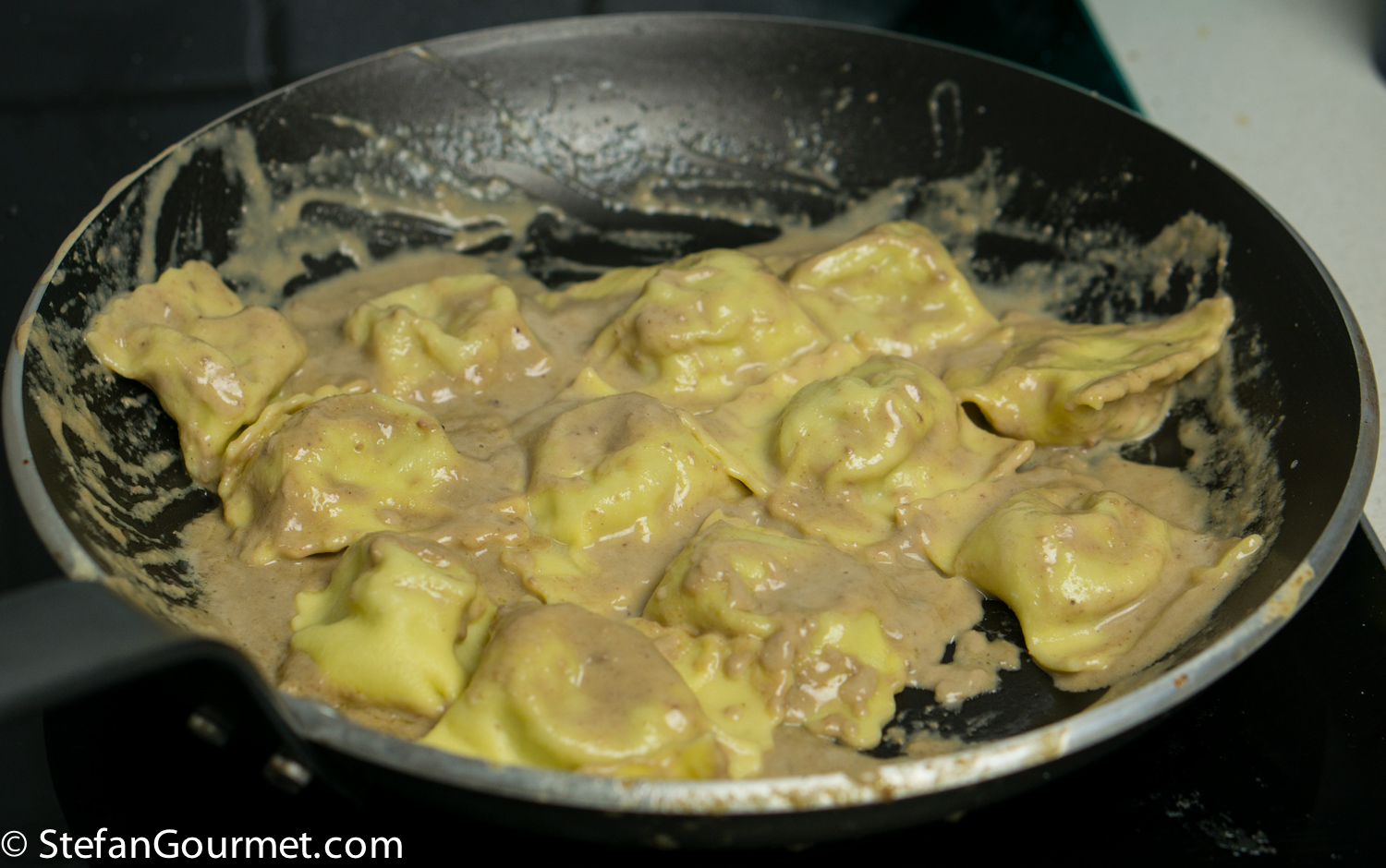 Once you’ve added all the ravioli, toss them carefully to coat them with the sauce on all sides.