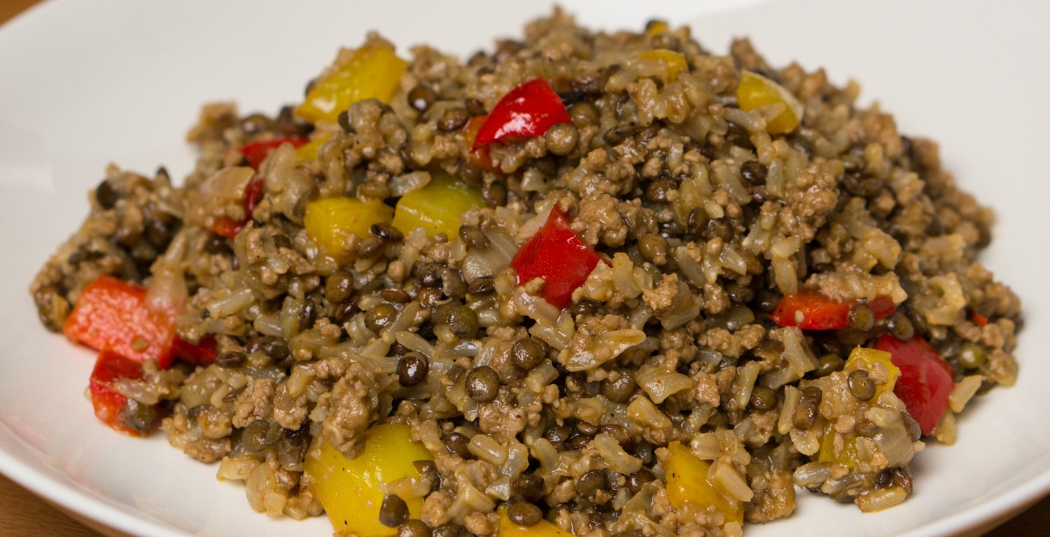 Oh yum, this is the kind of dish that I like to make for my family. We have so much ground beef from the 1/4 cow we bought I’m always looking for good ground beef recipe ideas. I’m also lucky in that our local Whole Foods grocery has organic du Puy lentils available in bulk, and I just happen to have some in my pantry along with brown rice. Yay!