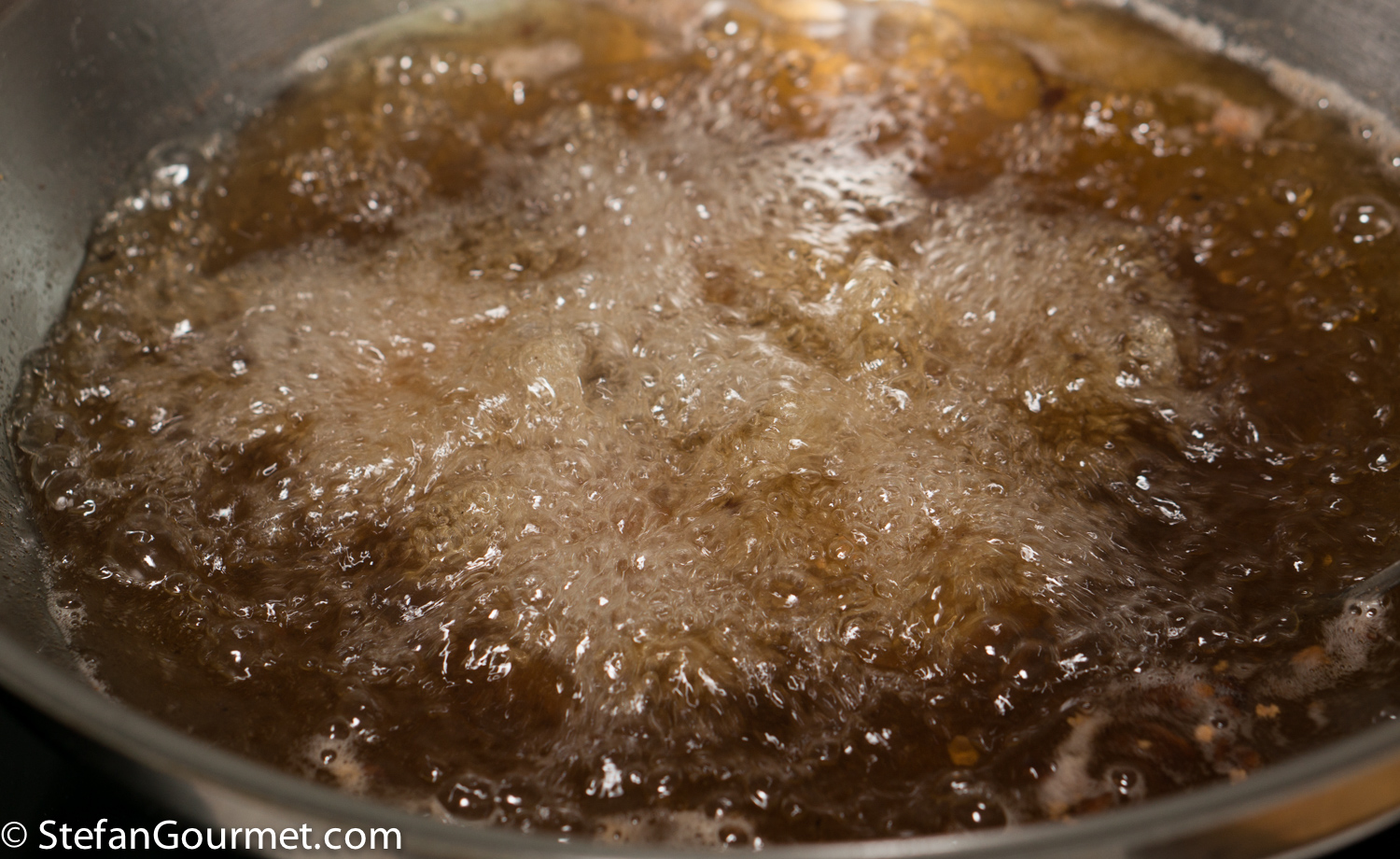 Deep fry the fish balls at 180C/350F. Use enough oil, at least 2 litres/quarts to fry 4 to 5 fish balls at the same time, as otherwise the temperature of the oil would drop by too much, resulting in greasy and soggy fish balls.