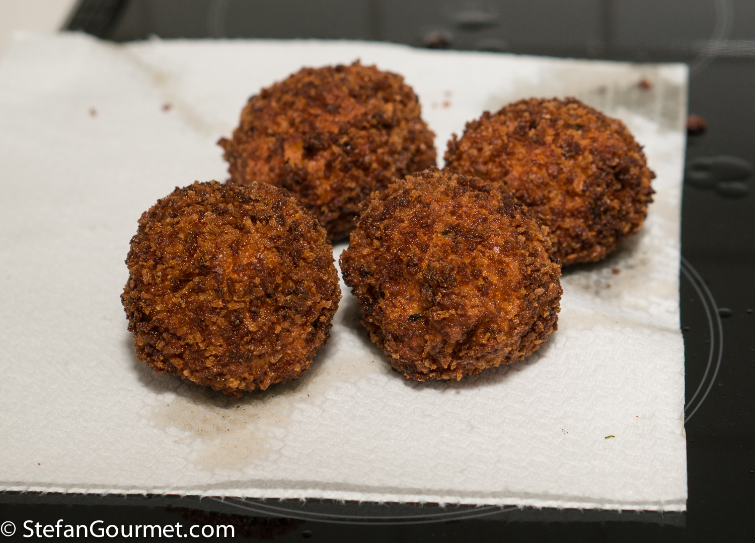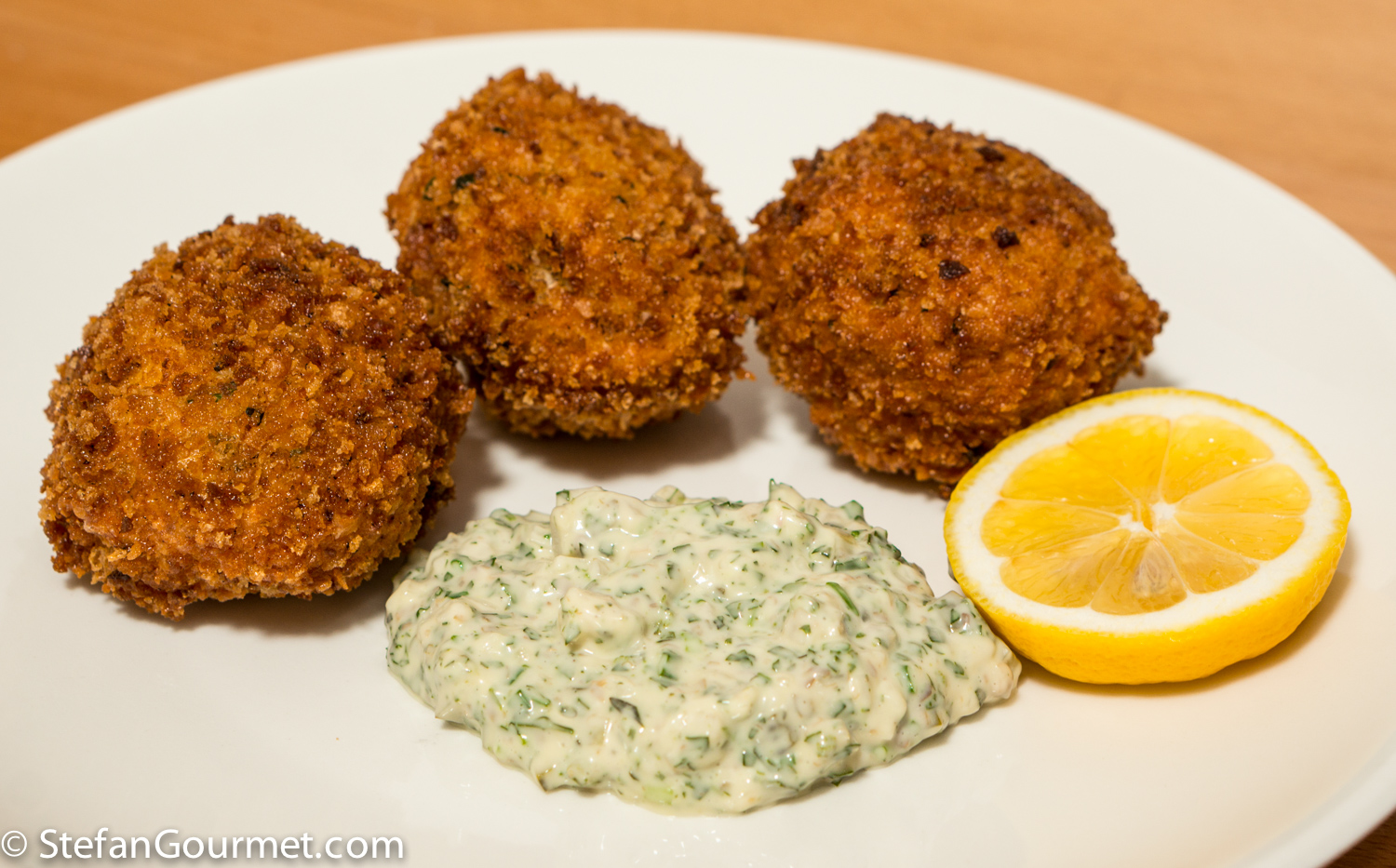 These fish balls have an original delicious taste of parsnip, tarragon, and fish. They are soft on the inside and crunchy on the outside. The remoulade sauce turns it into a real treat. You can serve these as a meal in themselves, or make them slightly smaller and serve a couple of them as an appetizer. To get a very crunchy crust, I used a combination of fine breadcrumbs and coarse breadcrumbs. (I always make my own breadcrumbs from leftover bread that I allow to dry and then grind in the food processor. I then sieve the breadcrumbs, first with a fine sieve to get fine breadcrumbs and then with a coarse sieve to obtain coarse breadcrumbs. The remaining pieces of bread are then ground again.) If you don’t make your own breadcrumbs, you could use panko instead.